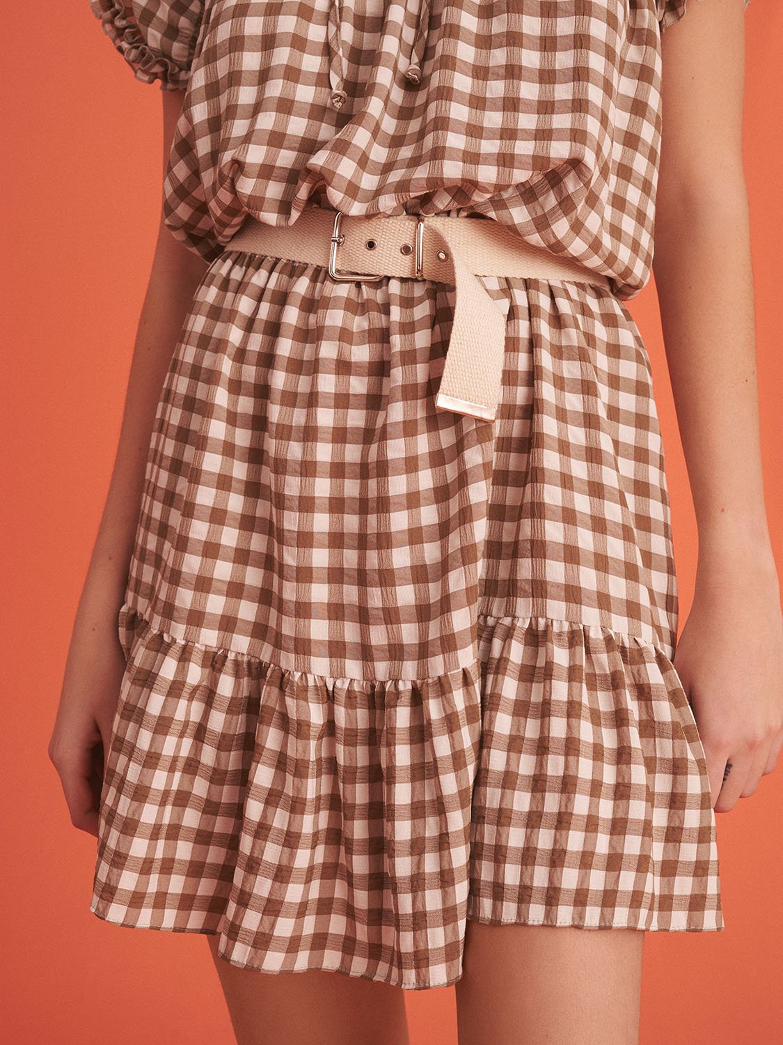 The versatility of the Ruched Plaid Dress allows you to style it in various ways. Pair it with strappy sandals for a casual day out or dress it up with heels and statement jewelry for an evening event. Layer it with a lightweight kimono or a denim jacket for those cooler summer nights. The dress's flounced hem adds a playful touch, making it suitable for picnics, beach outings, or brunch with friends.