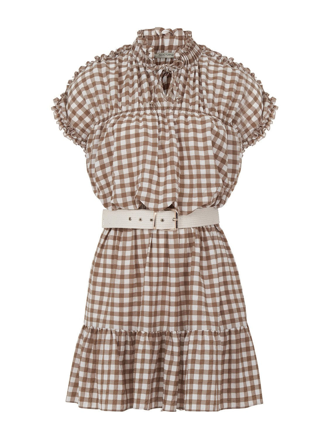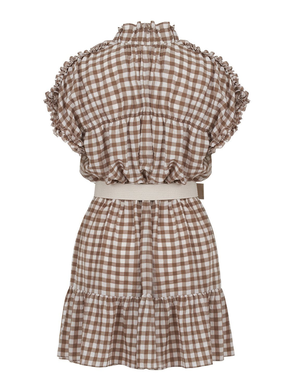 The Ruched Plaid Dress is a must-have addition to your summer wardrobe. This stylish mini dress features a ruffled band collar and short sleeves, making it perfect for warm weather. The dropped shoulder design adds a relaxed vibe, while the ruffled details at the shoulders and sleeves enhance its feminine charm. With an elastic waistband and a chic metal buckle belt, this dress not only flatters your figure but also ensures comfort throughout the day.