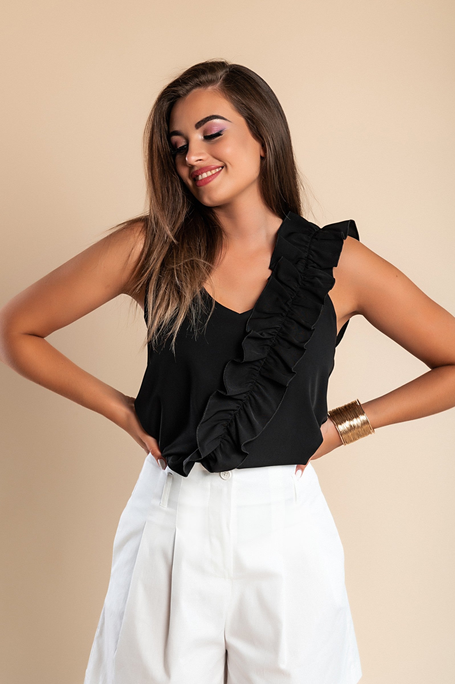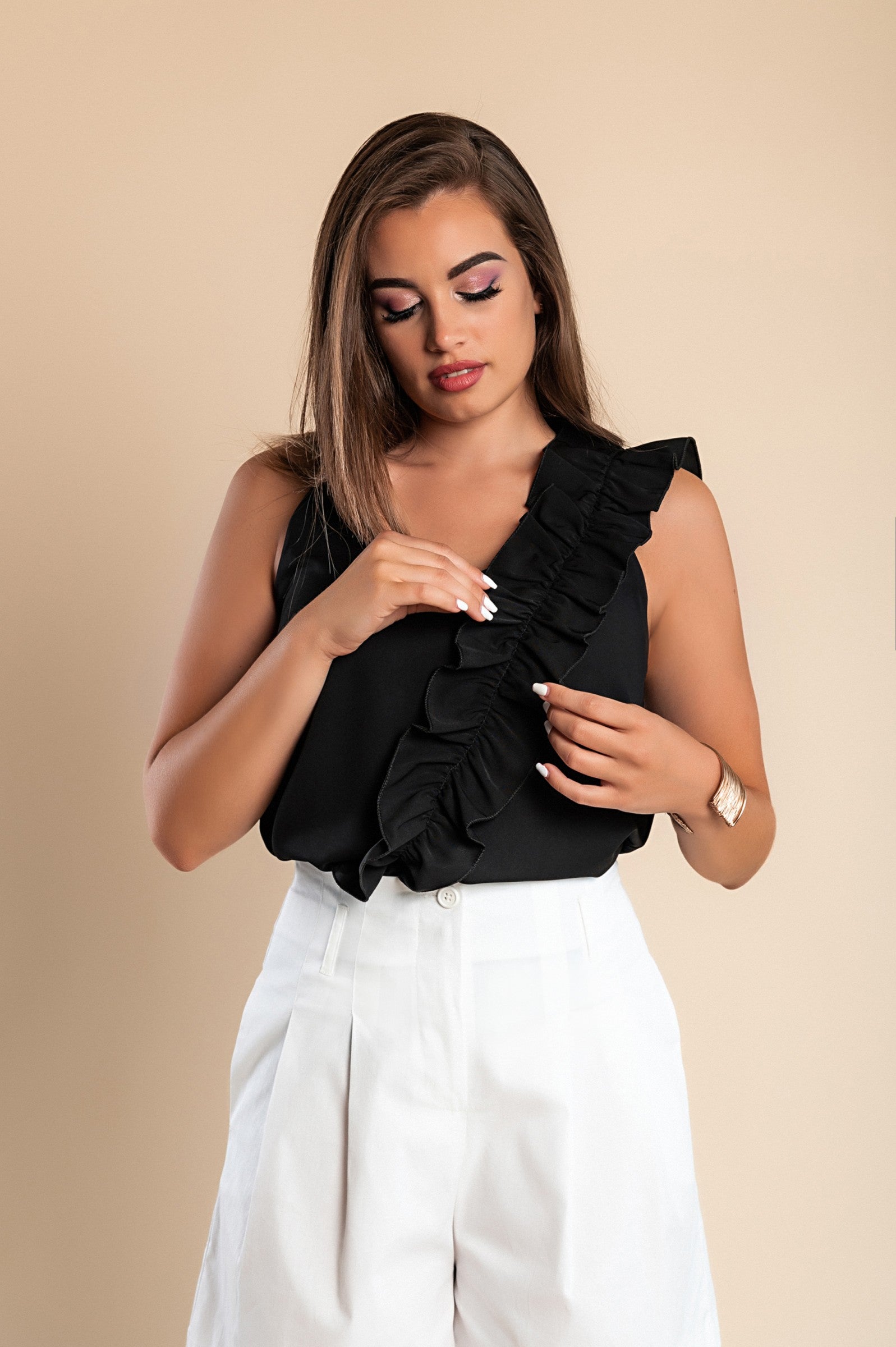 Choosing our black ruffle top means investing in quality and style. With its unique design and comfortable fit, it's a piece that you'll reach for time and time again. Plus, being made in Italy, you can trust that you're getting a product that meets high standards of fashion and durability.