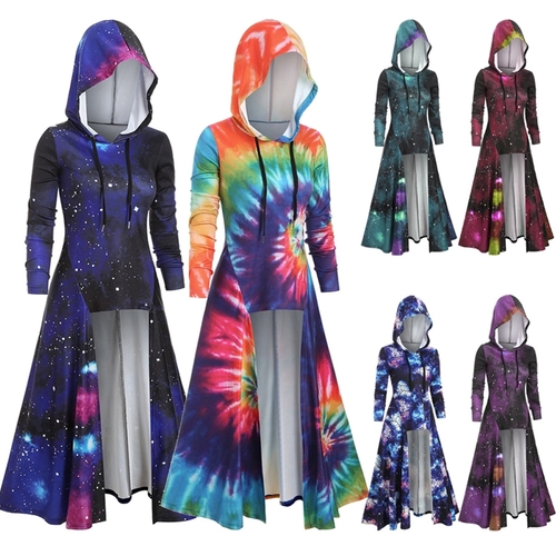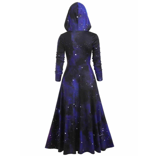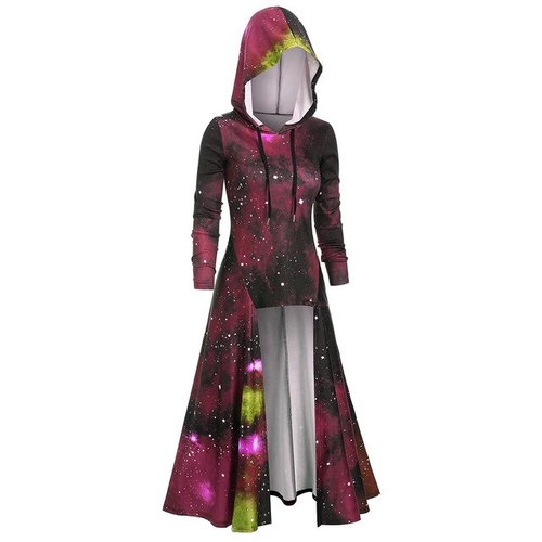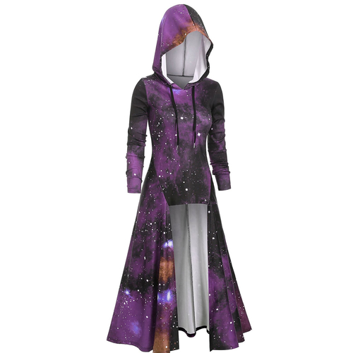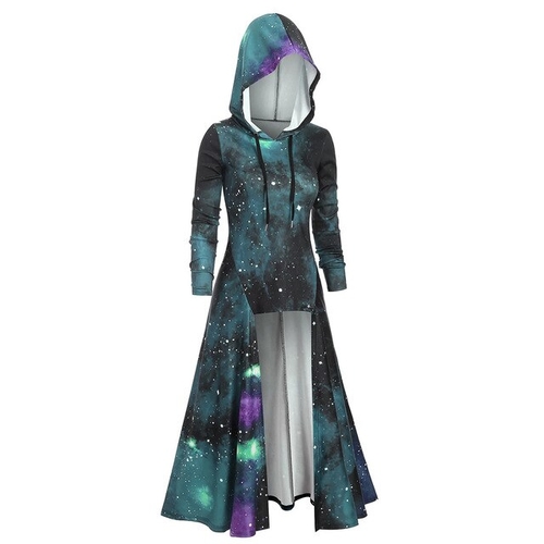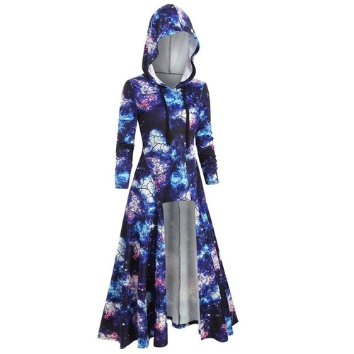 Model Number: Hooded Galaxy Print High Slit Maxi Top 20191001