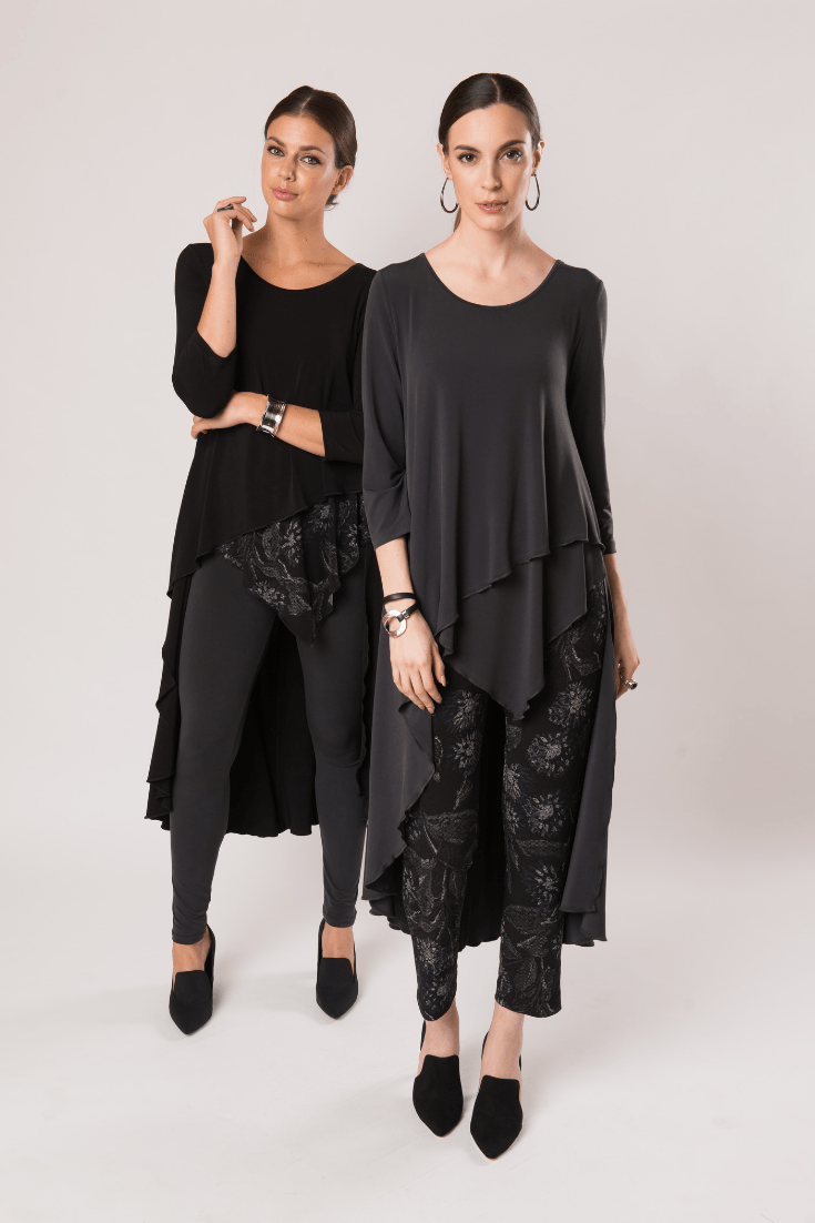 In summary, the Savannah Tunic in Black & Venice Print is a versatile, stylish, and comfortable addition to any wardrobe. Its flattering design, easy care fabric, and multiple styling options make it a go-to choice for women who want to look and feel their best, no matter the occasion.