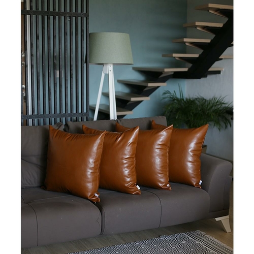 Transform your living space with the exquisite Set of 4 Brown Faux Leather 22-inch Pillow Covers. These pillow covers are designed to add a touch of warmth and sophistication to any room, making them an ideal choice for both traditional and contemporary decor styles. The rich, warm brown color complements a variety of color palettes, allowing you to mix and match with your existing furniture and accessories.