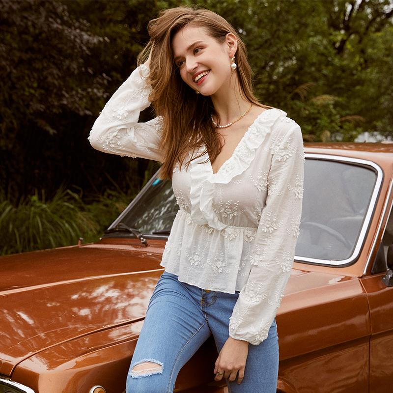 This blouse boasts several key features that make it a must-have for any fashion-forward woman. The full-length sleeves provide coverage while maintaining a chic look, and the regular sleeve style ensures ease of movement. The ruffle decoration adds a playful element, making this blouse stand out in any setting.