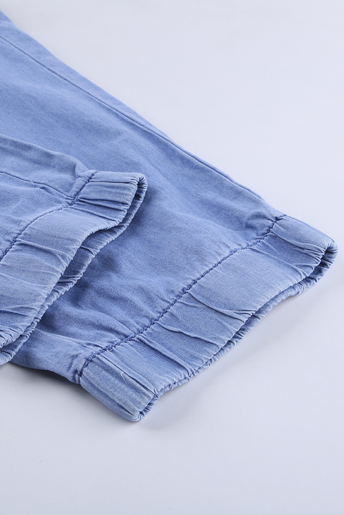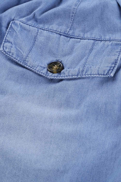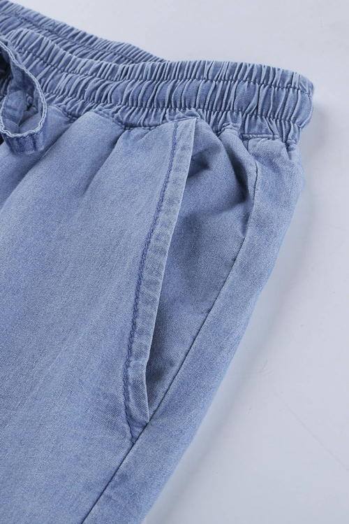 •The refreshing look features a perfect Spring + Summer light wash denim hue