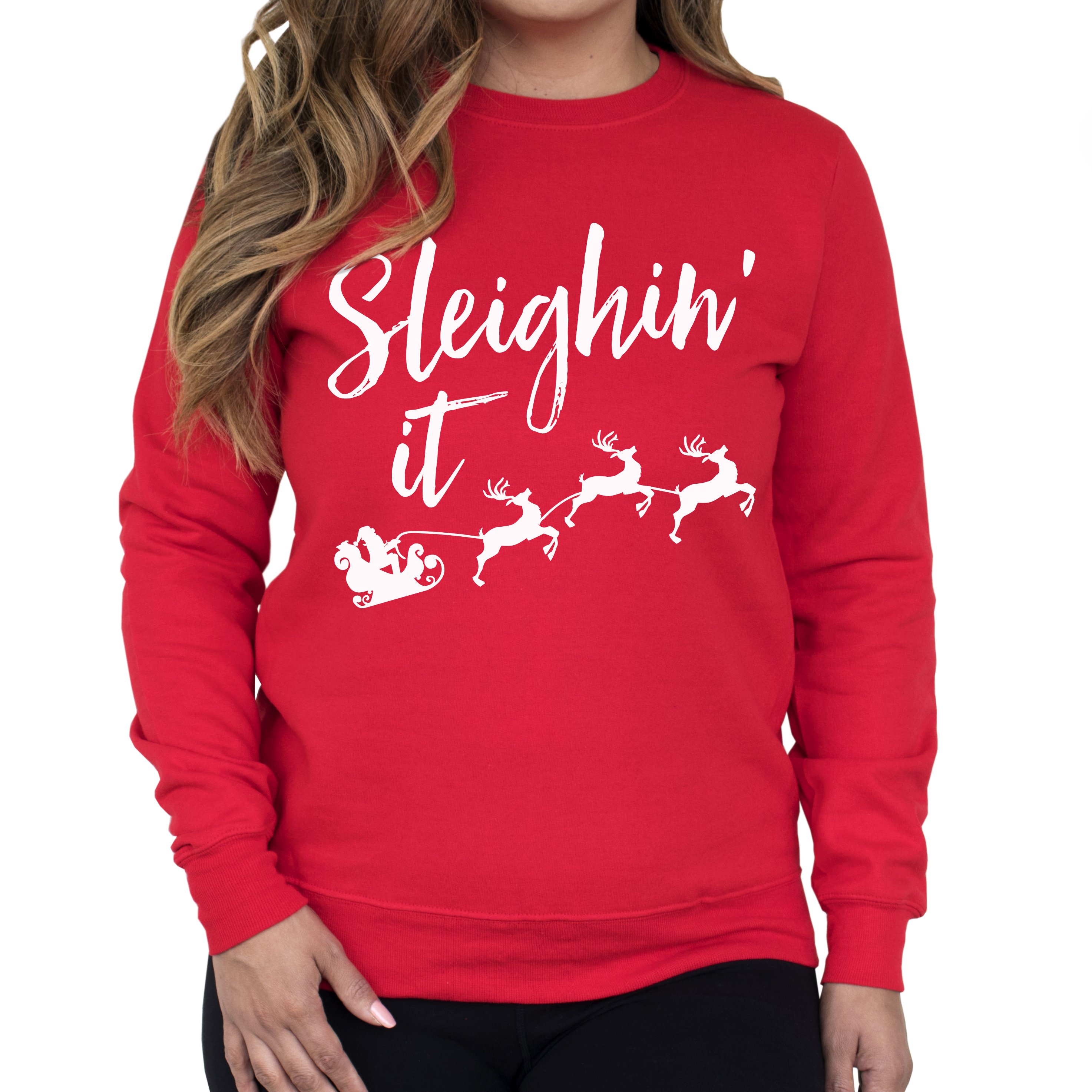 Choosing the Sleighin It Christmas Crew Neck Sweatshirt means opting for quality, comfort, and style. This sweatshirt is designed to bring joy and warmth during the holiday season, making it a must-have addition to your festive wardrobe. Its playful design and comfortable fit make it a versatile piece that can be worn in various settings, from casual outings to cozy nights in.