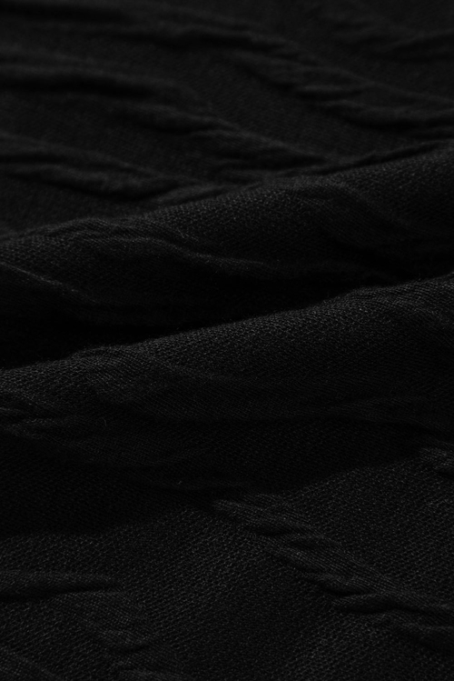 The Sleek Black Wavy Textured Long Sleeve Slim Fit T-Shirt features a classic round neck design, which is universally flattering and easy to wear. The long sleeves provide additional coverage, making it a great choice for transitional seasons. The solid black color is not only timeless but also versatile, allowing you to pair it effortlessly with jeans, skirts, or trousers.