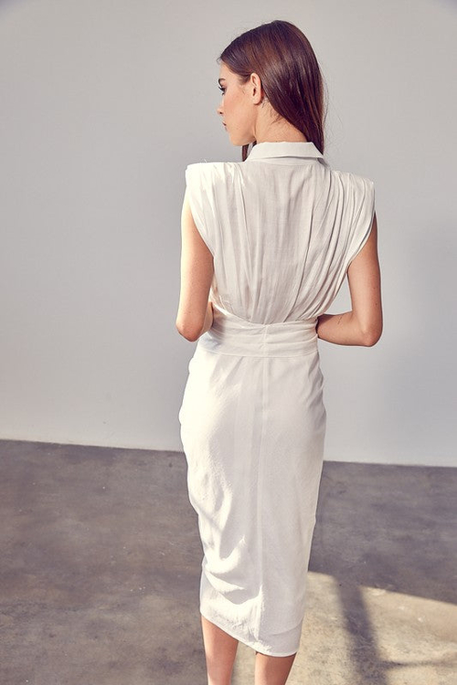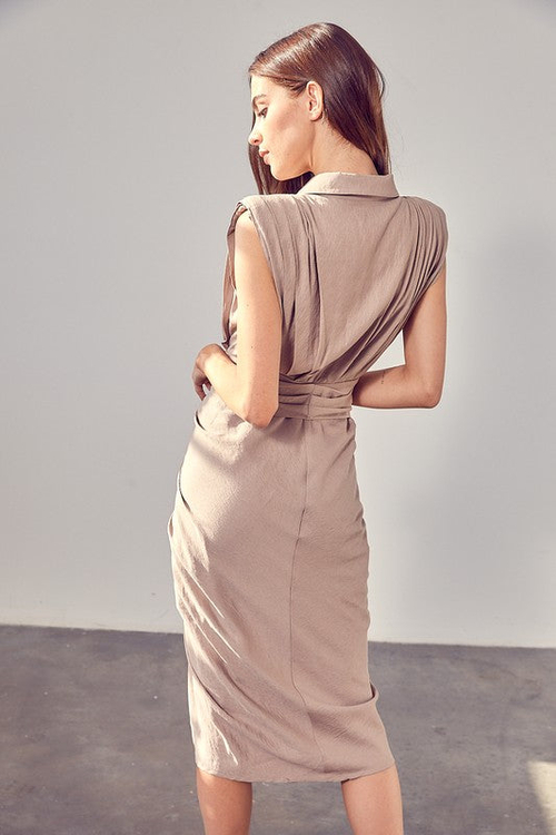 The Sleeveless Button Front Tie Dress is a breezy and fashionable choice for warm-weather occasions. Its sleeveless design and button-front detailing give it a relaxed yet stylish vibe, perfect for casual outings or summer gatherings. The added tie at the front adds a playful touch, making this dress a versatile and chic addition to your wardrobe.
