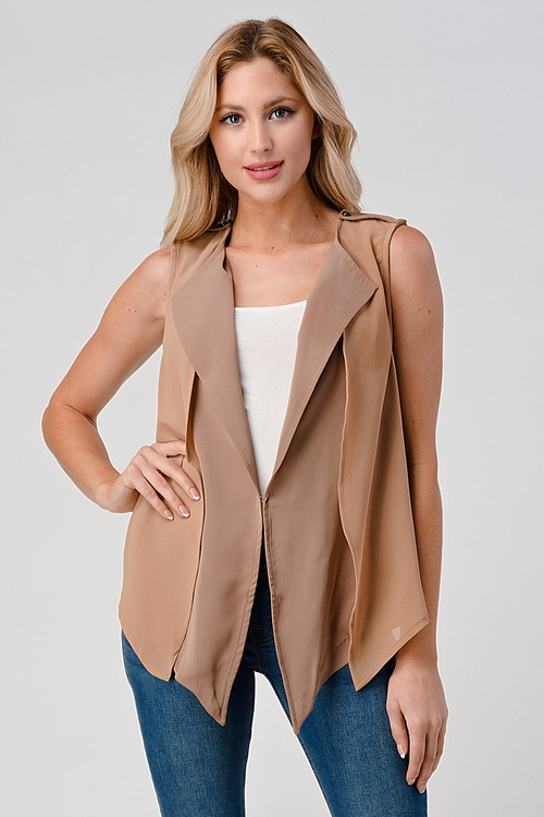 Don't miss out on the opportunity to enhance your wardrobe with our Sleeveless Draped Open Front Vest. Available in multiple sizes, this vest is designed to flatter all body types. Shop now and discover the perfect layering piece that combines style, comfort, and versatility.