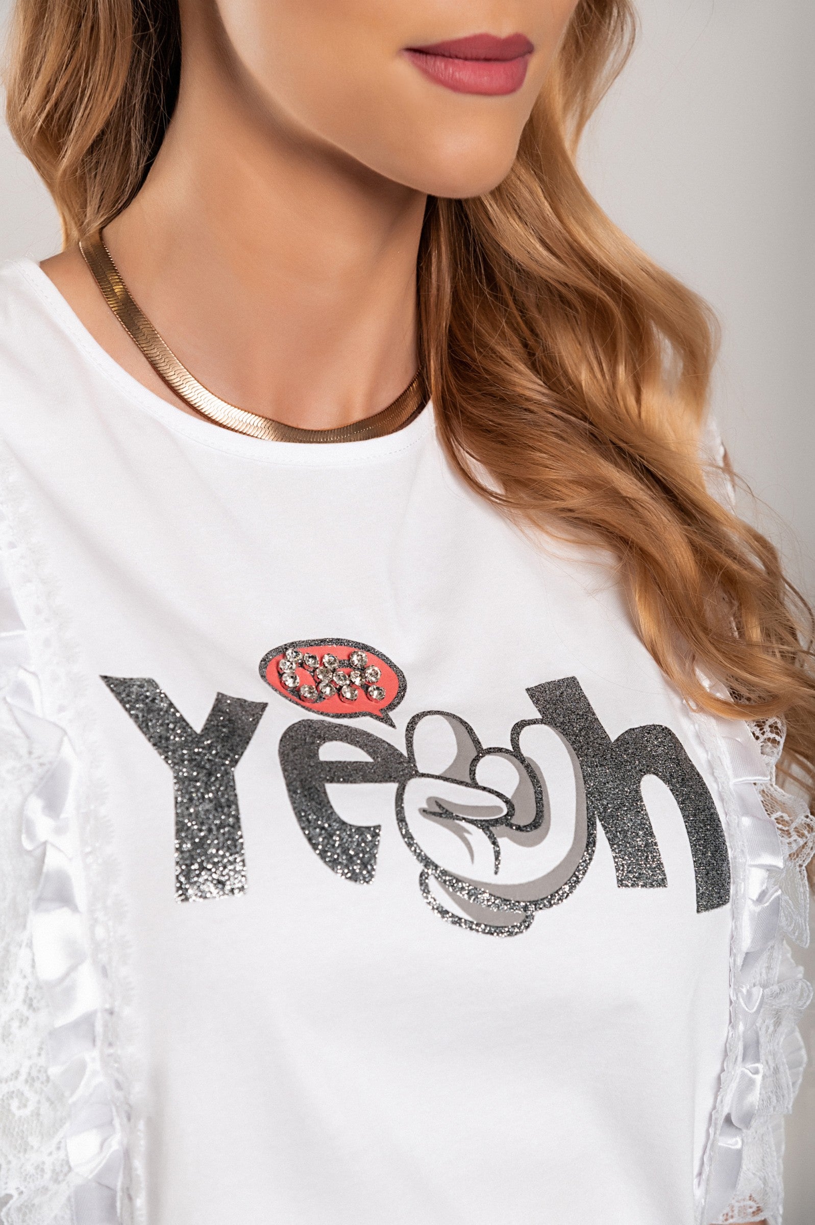 The standout feature of this T-shirt is its decorative frills on the sides, adding a touch of elegance and uniqueness to your outfit. The frills create a playful silhouette that enhances your overall look, making it a versatile piece that can be paired with jeans, shorts, or skirts.