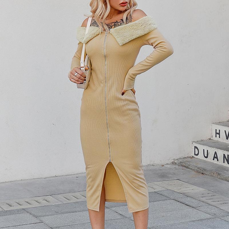 One of the standout features of this dress is its unique slash neck design, which adds a modern twist to a classic style. The full-length sleeves provide coverage while still allowing for a fashionable appearance. Additionally, the dress is adorned with stylish zippers that not only enhance its aesthetic appeal but also offer functional elements. These zippers can be used for easy wear and removal, making it a practical choice for busy individuals.