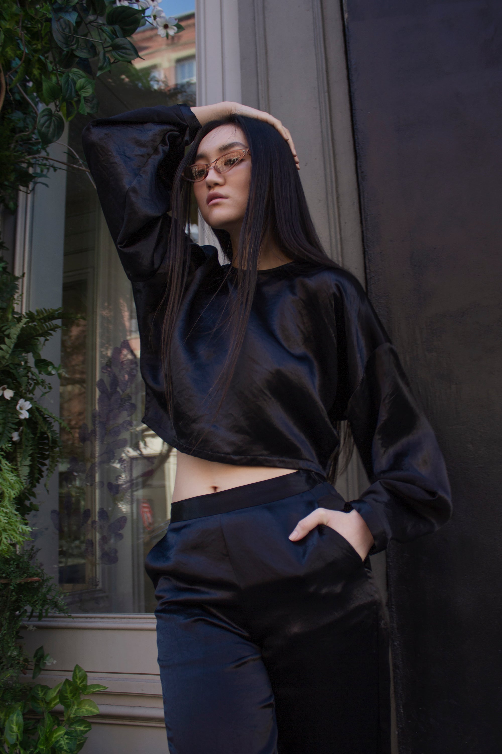 Crafted from high-quality Japanese silk, the Sophie Black Crop Top offers a soft, smooth texture that enhances your comfort throughout the day. Silk is known for its breathability and natural temperature-regulating properties, making it an ideal choice for both warm and cool weather. This luxurious fabric drapes beautifully, ensuring you look effortlessly chic no matter how you style it.