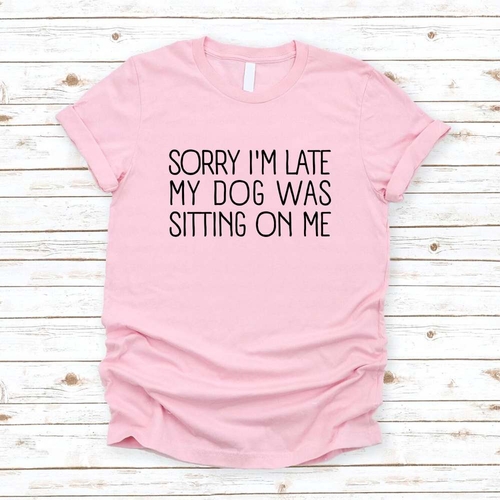 Introducing the 'Sorry I'm Late My Dog Was Sitting On Me' T-shirt, a delightful addition to any dog lover's wardrobe. This T-shirt is not just a piece of clothing; it's a statement that resonates with pet owners everywhere. Whether you're heading out for a casual day or lounging at home, this shirt is designed to keep you comfortable while showcasing your love for your furry friend.