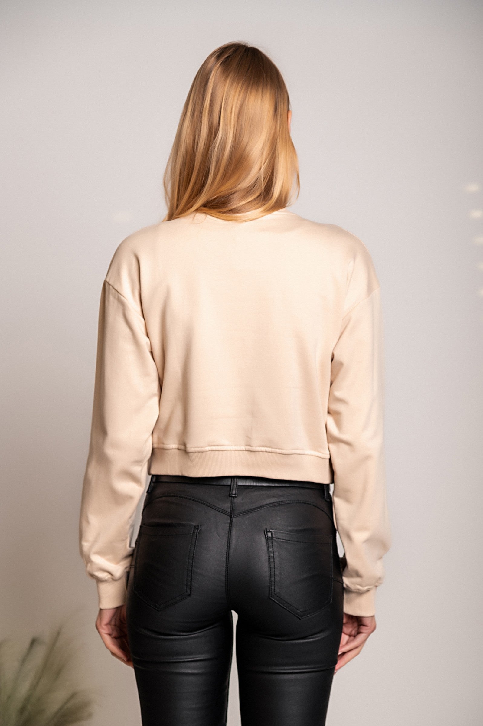 This sweatshirt is designed with long sleeves that provide warmth and coverage, making it perfect for cooler weather. The shorter cut adds a modern touch, allowing for easy layering over your favorite workout tops or casual tees. The elastic waist not only enhances the fit but also adds a sporty flair to the overall look.
