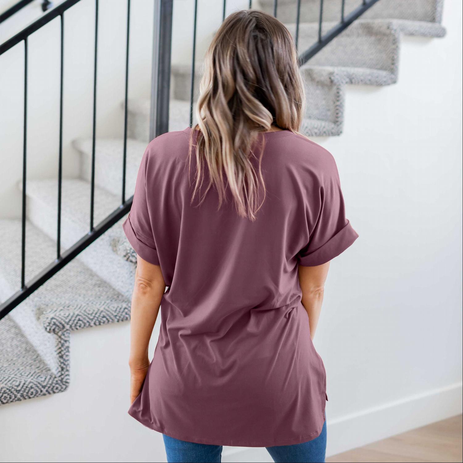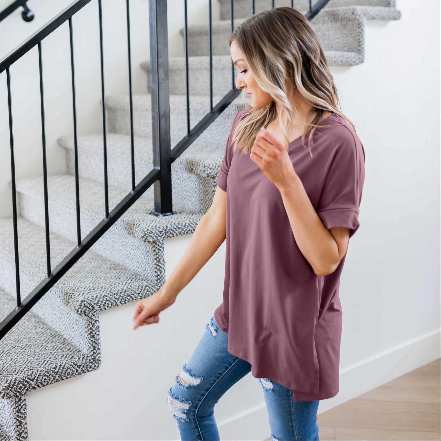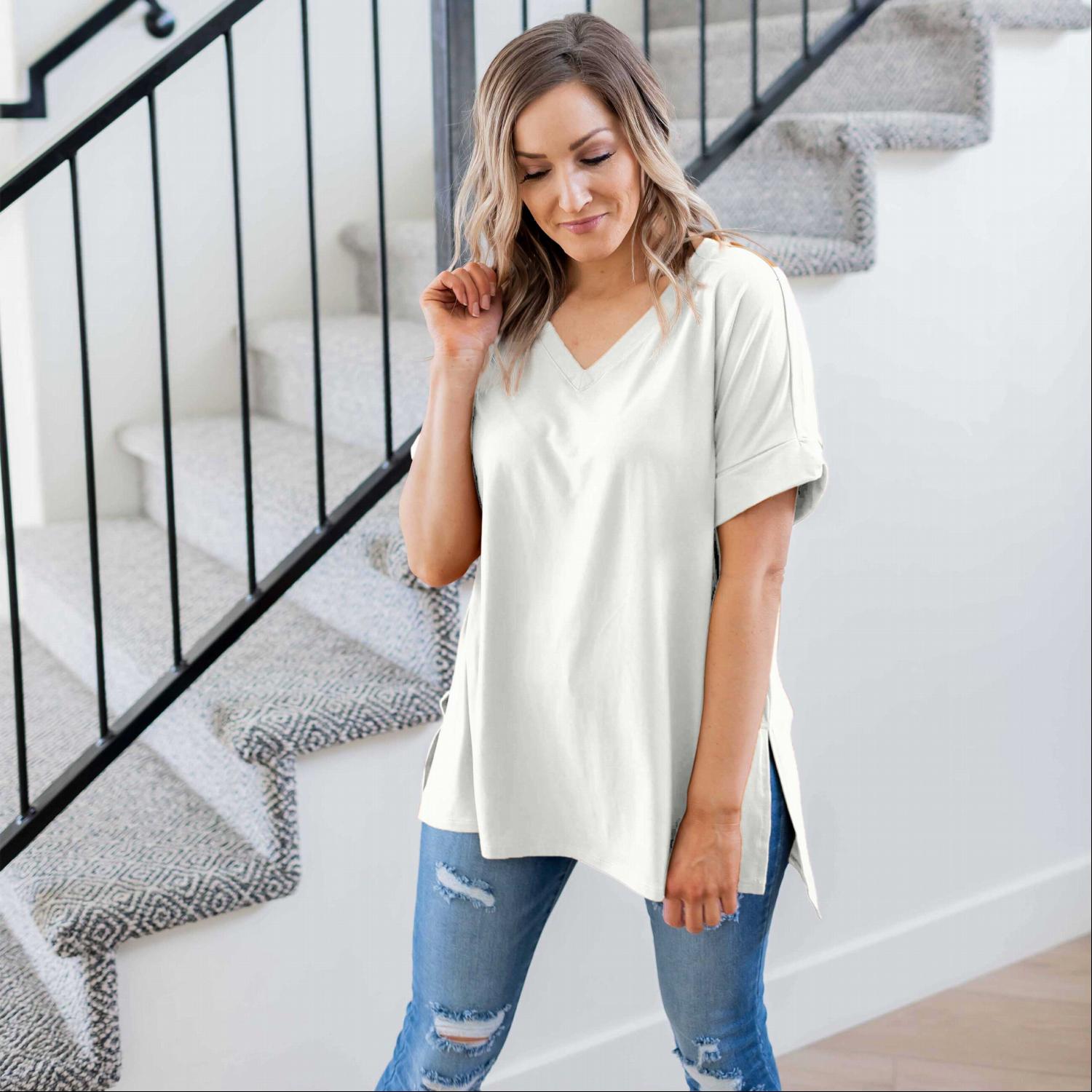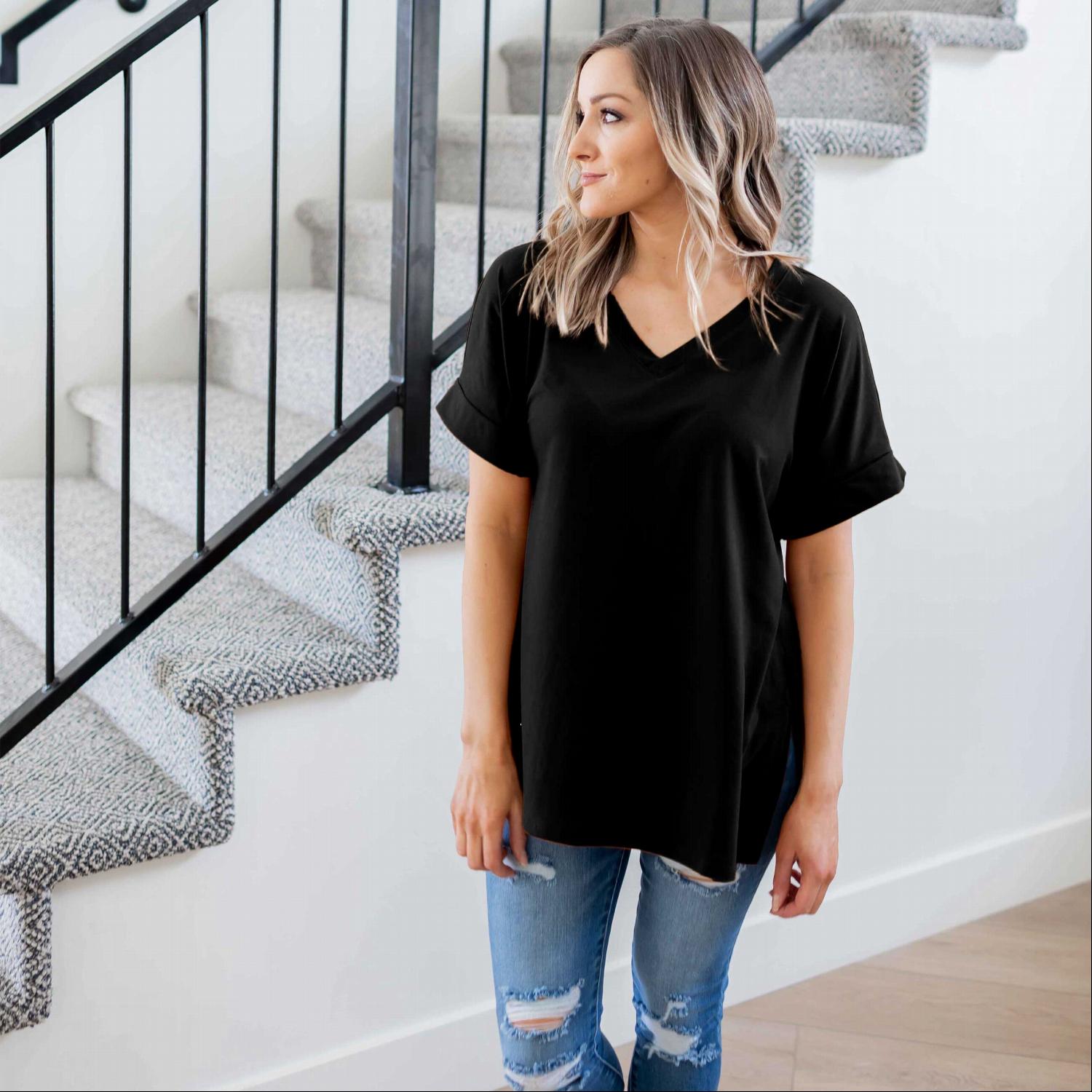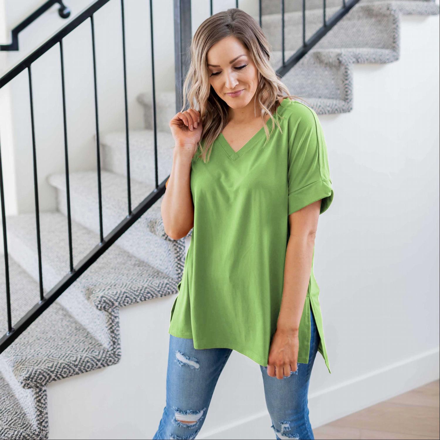 The Sporty V-Neck Tee comes in a variety of colors, allowing you to choose between neutral tones or bold shades that reflect your personal style. Whether you prefer classic black, soft pastels, or vibrant hues, there’s a color option for everyone. This variety makes it easy to mix and match with other items in your closet.