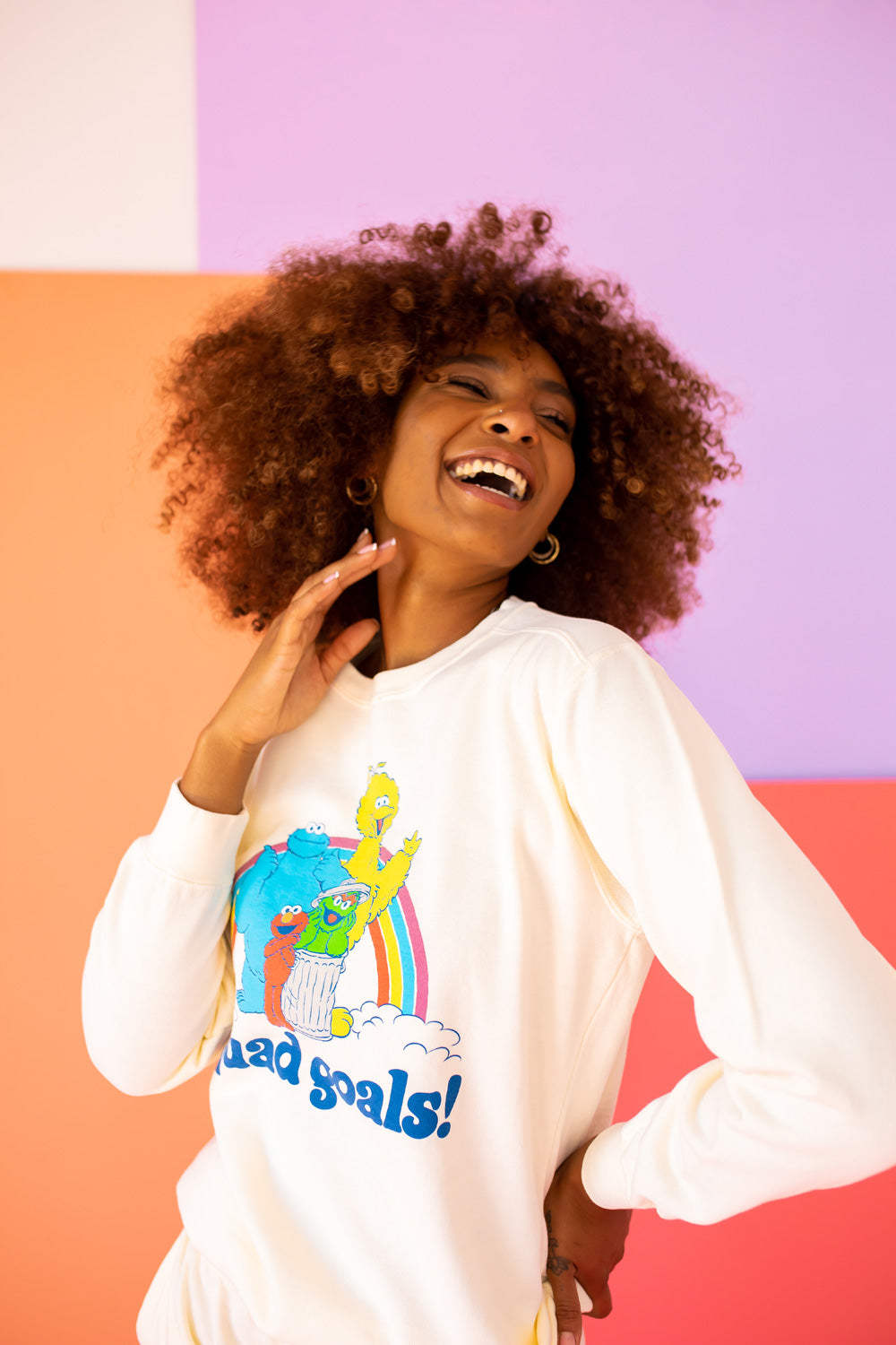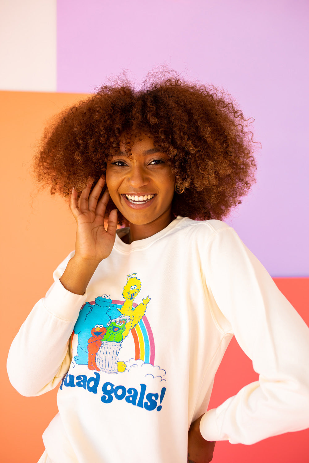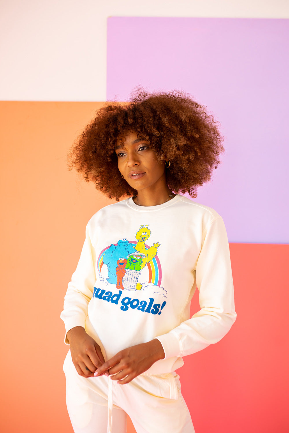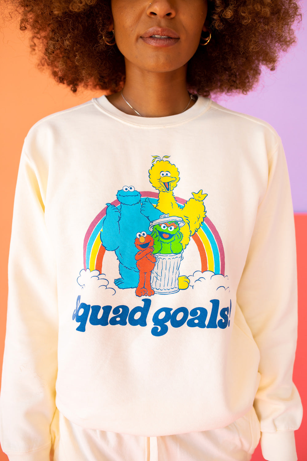 Whether you're a lifelong fan of Sesame Street or just looking for a fun and unique addition to your wardrobe, the Squad Goals Sesame Sweatshirt is perfect for any occasion. Wear it to casual outings, movie nights, or even while running errands. Its playful design is sure to spark conversations and bring smiles to those around you.