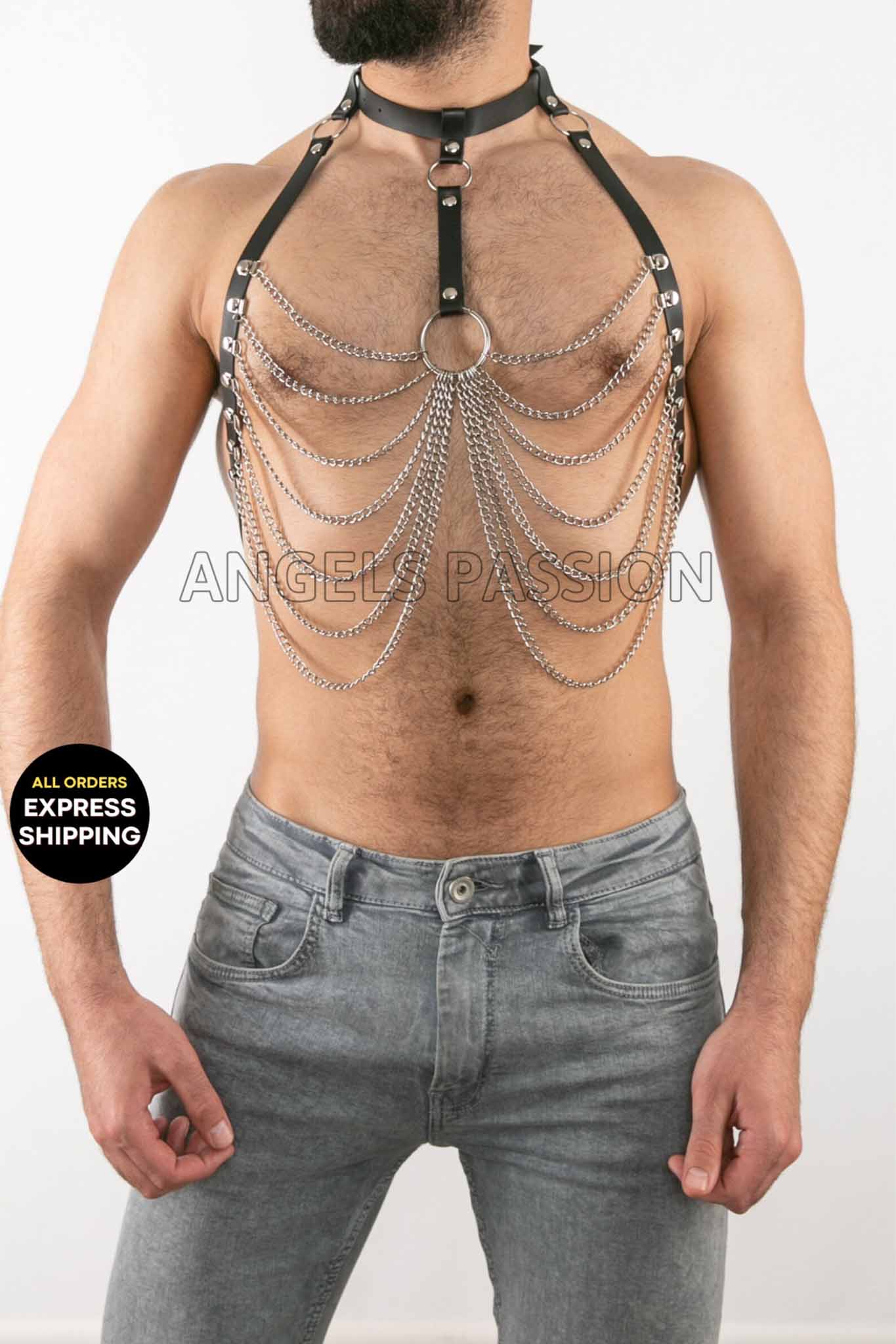 The Stainless Steel Chain Mens Harness Leather is an essential accessory for modern men who value both style and functionality. This chest harness is designed for those who are always on-the-go, providing a unique blend of comfort and fashion. Its sleek design allows it to be worn under most shirts without adding bulk, making it a versatile addition to any wardrobe.