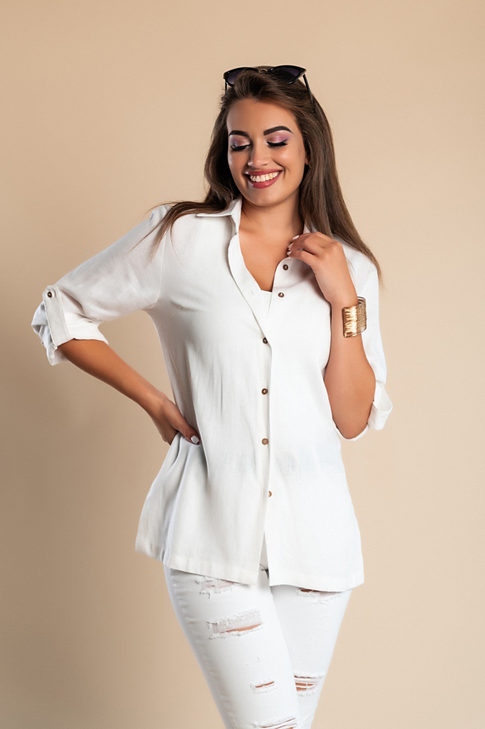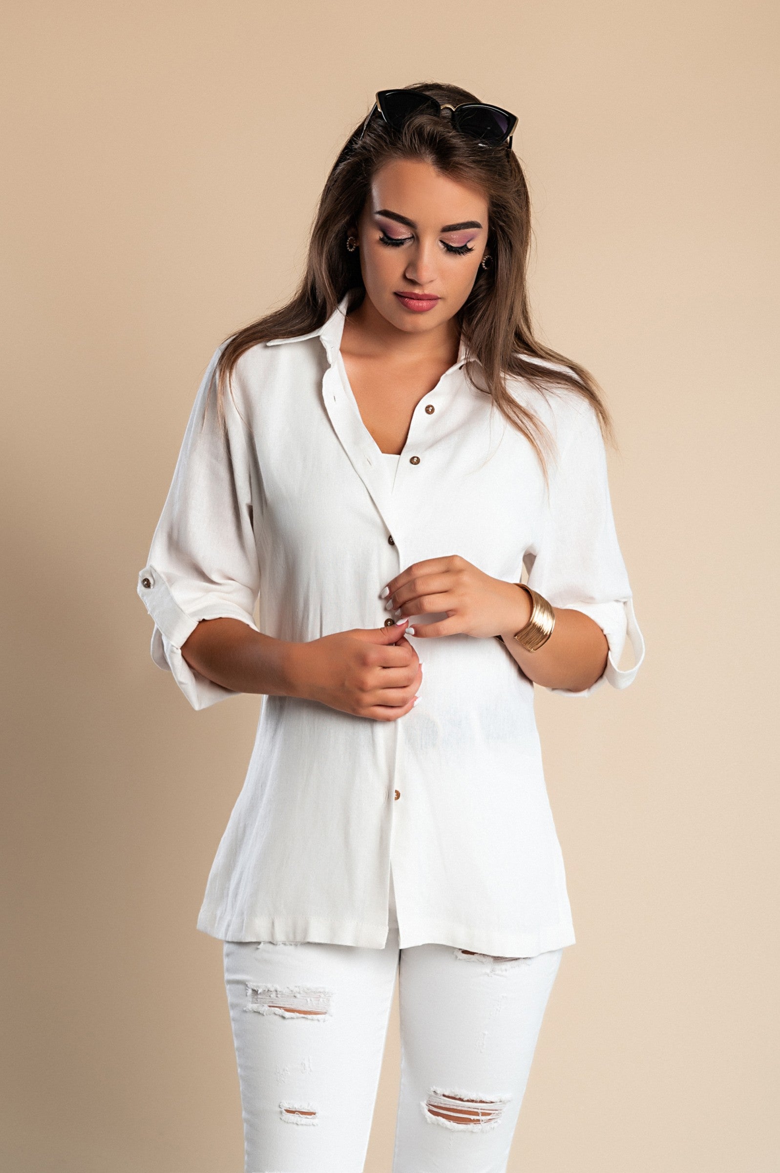 In summary, our Summer Linen Shirt in white is the perfect blend of style, comfort, and quality. With its classic design, adjustable features, and breathable fabric, it is an essential piece for anyone looking to elevate their summer wardrobe.
