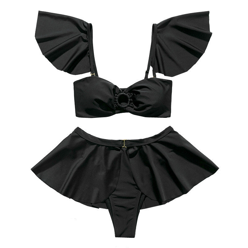 The four-piece set includes a bikini top, bottom, sleeves, and a skirt, allowing for versatile styling options. The solid color design adds a touch of elegance, making it suitable for various occasions, from sunbathing to swimming. The backless design not only adds a sexy flair but also ensures you stay cool and comfortable during hot summer days.