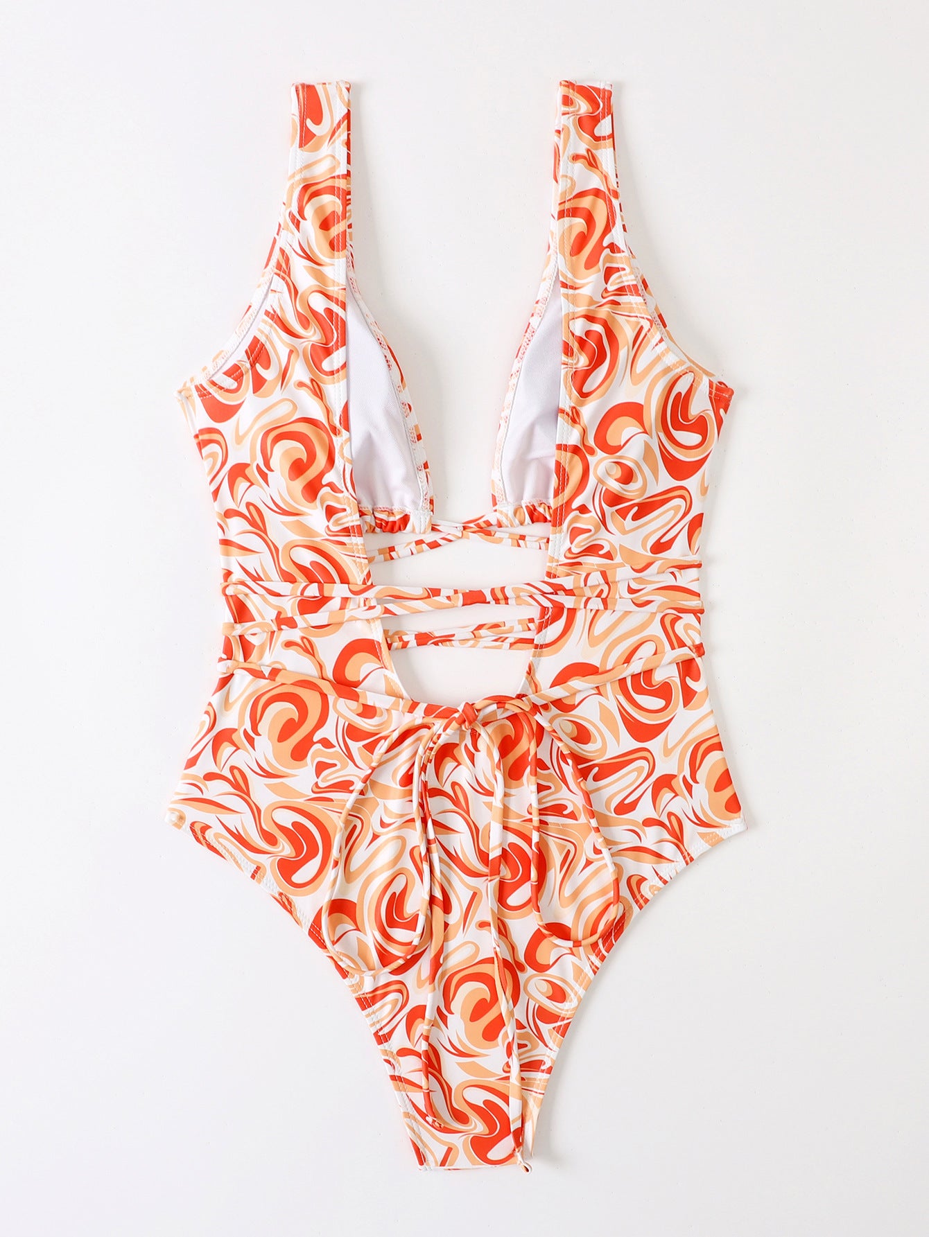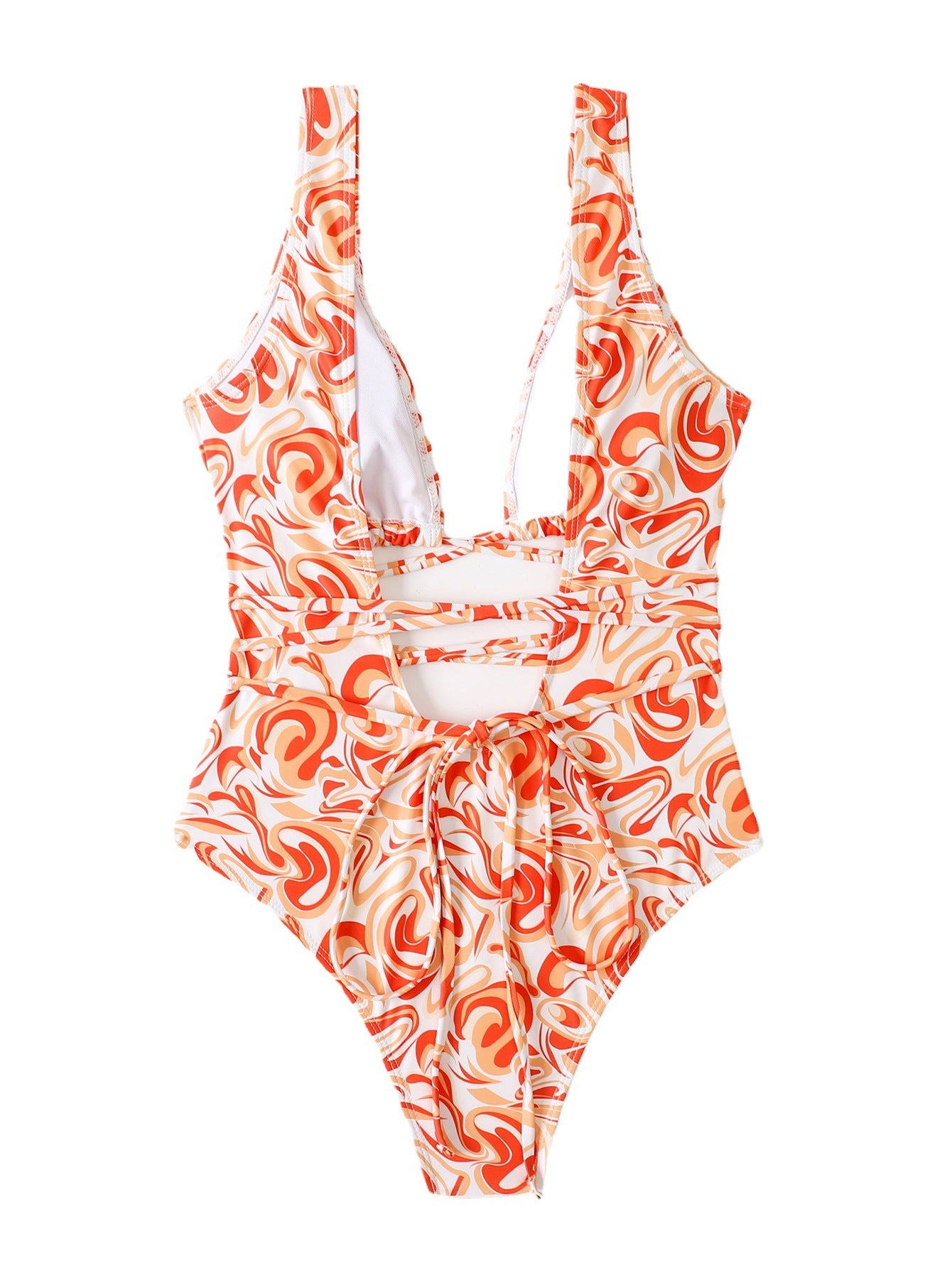 A stylish women's one-piece swimsuit featuring a sexy print design, made from durable polyester and spandex for comfort and support.