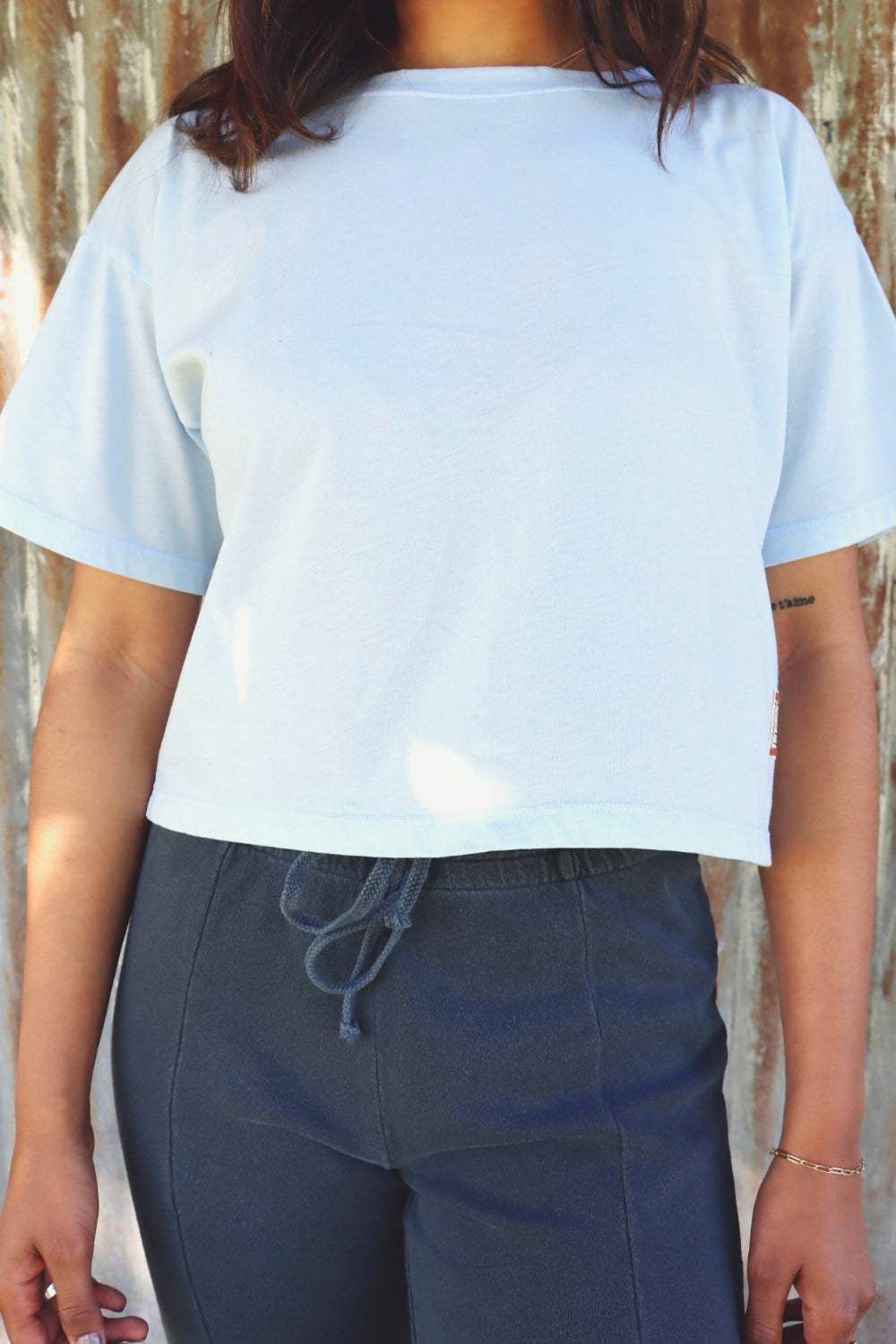 The Awaken Tee is the ultimate addition to your wardrobe, combining style, comfort, and sustainability. This incredibly lightweight, boxy cropped t-shirt is designed to add a carefree silhouette to any outfit, making it a versatile choice for various occasions. Whether you're heading out for a casual day with friends or lounging at home, the Awaken Tee ensures you look effortlessly chic.