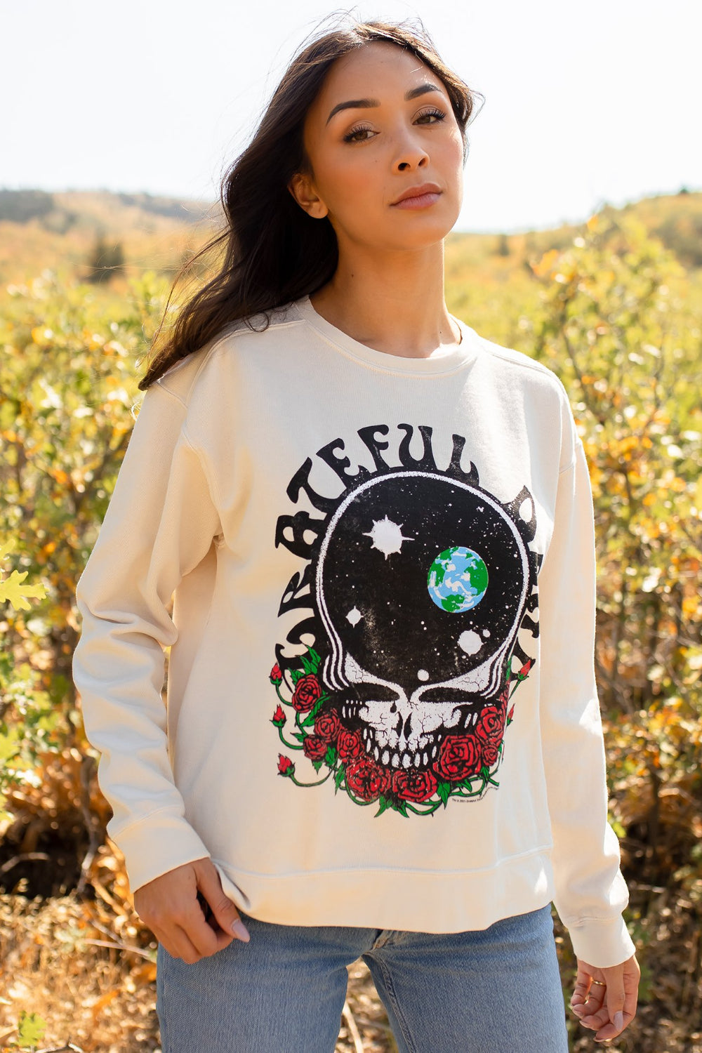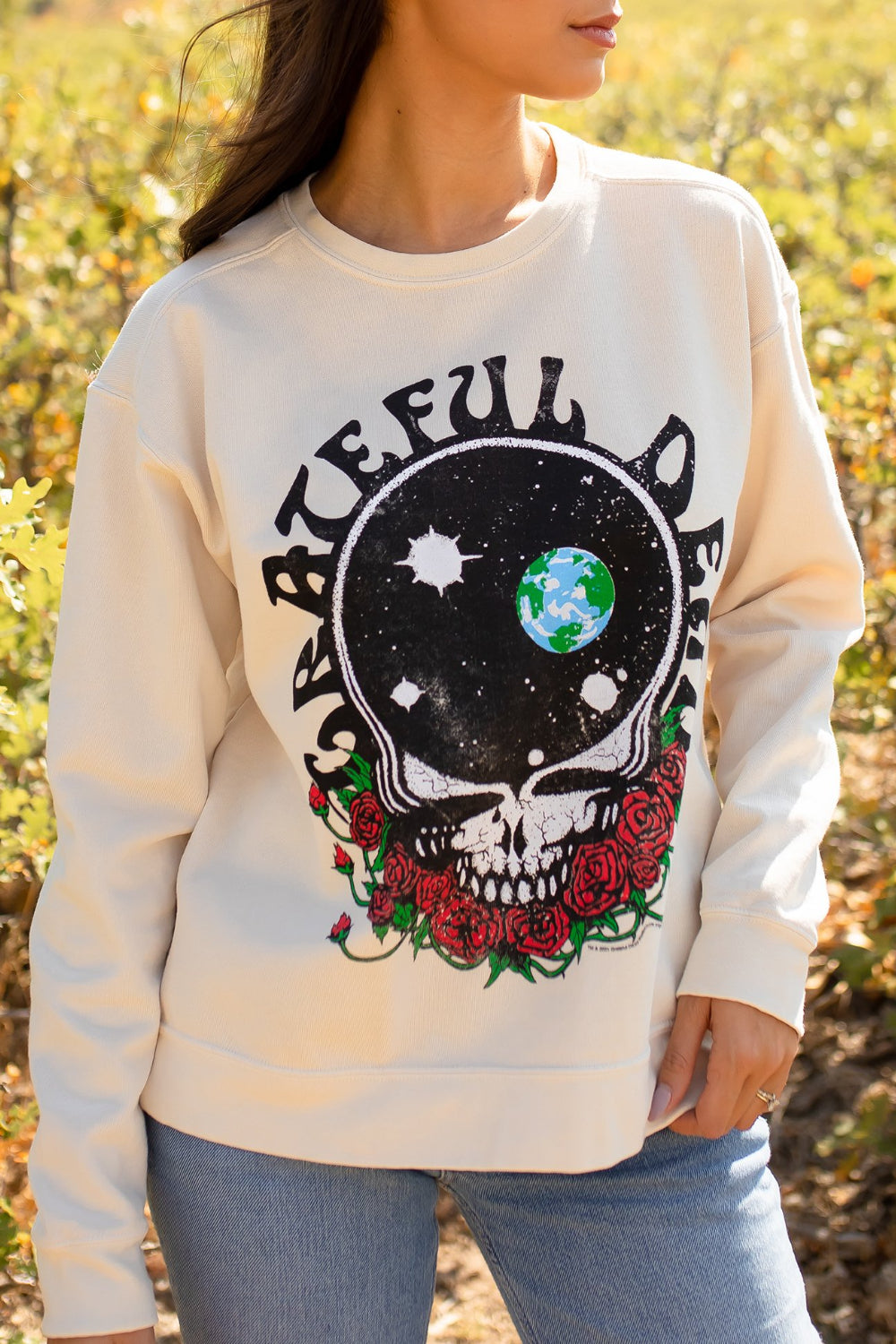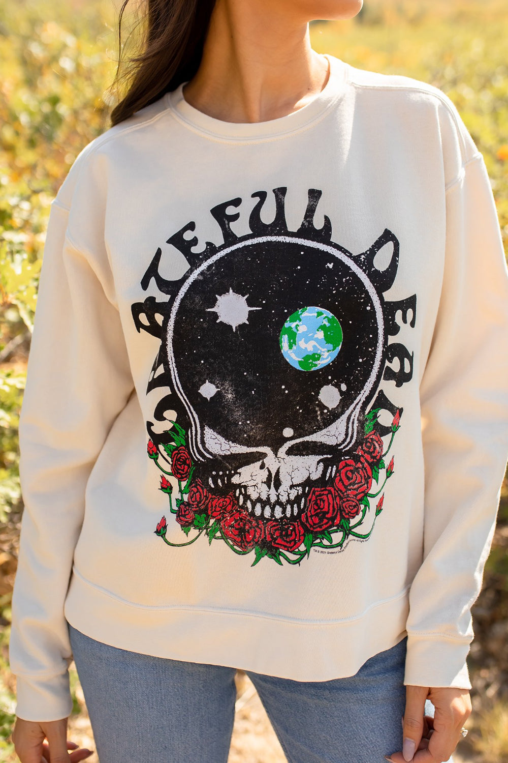Whether you're heading to a concert, lounging at home, or running errands, this sweatshirt is versatile enough to fit any occasion. The classic white color makes it easy to pair with any outfit, while the Grateful Dead logo adds a touch of nostalgia and personality.