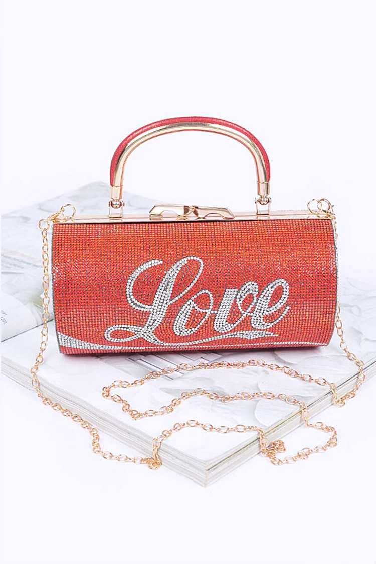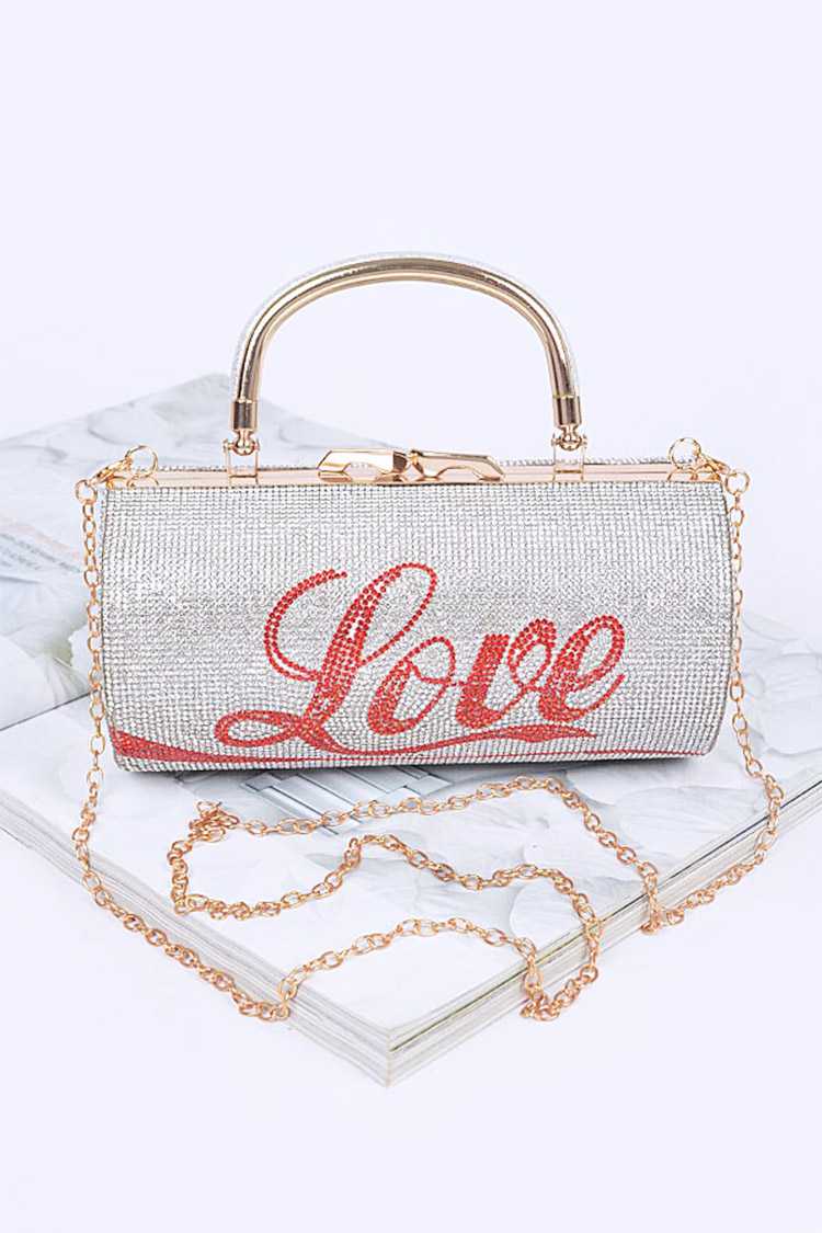 When styling the L.O.V.E Bag, consider pairing it with a little black dress for a classic look or with jeans and a stylish top for a more casual vibe. The rhinestone detailing adds a touch of glamour, making it easy to dress up any outfit. Don't forget to match your jewelry to the bag's metallic elements for a cohesive look.