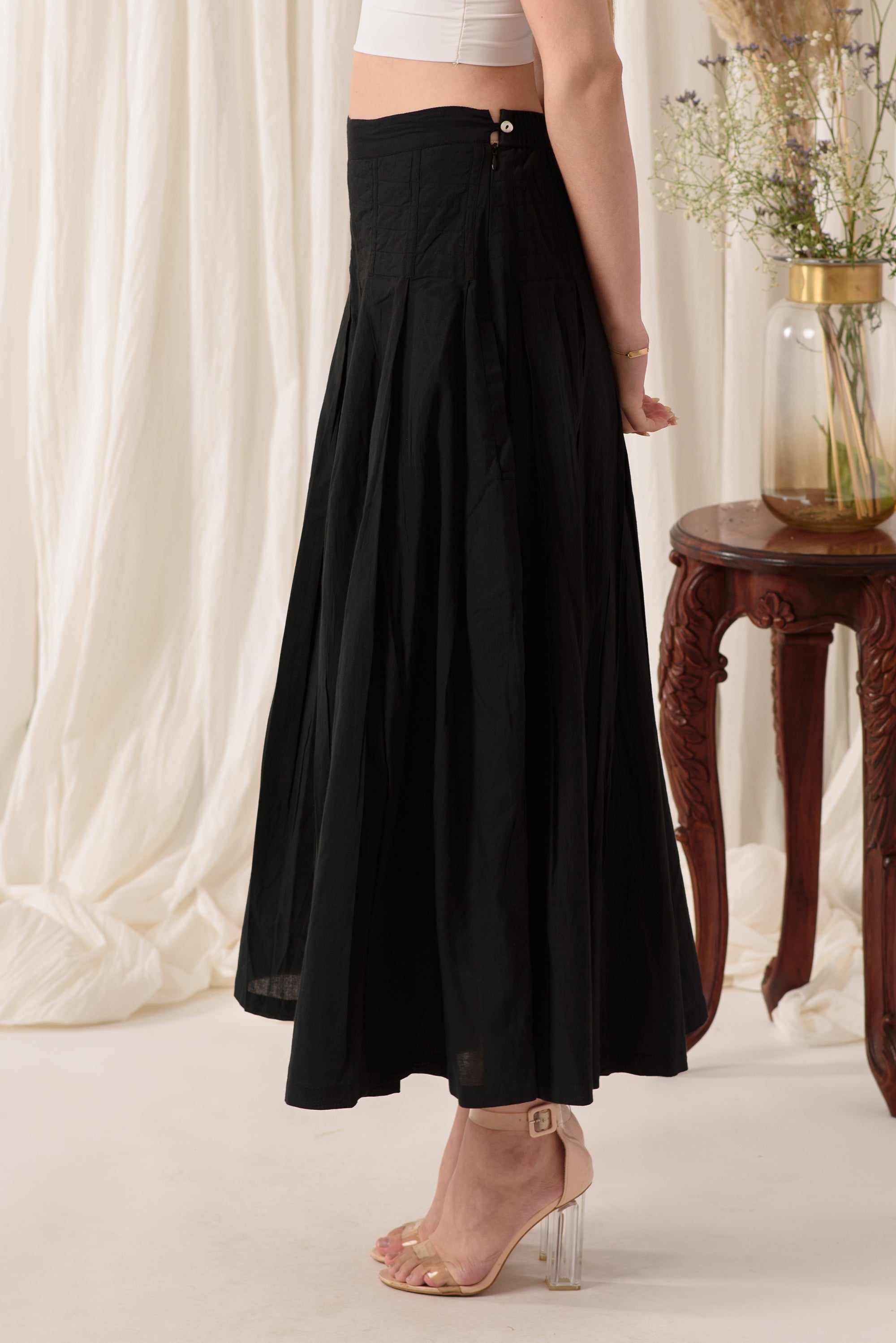 Caring for The Midnight Black Flared Pants is a breeze. Simply machine wash them in cold water and tumble dry on low heat to maintain their shape and softness. This easy maintenance allows you to spend less time worrying about laundry and more time enjoying your stylish new pants.