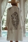 • A bamboo fabric band and matching tie finishes your printed kimono in your choice of black, cream, or dark grey.