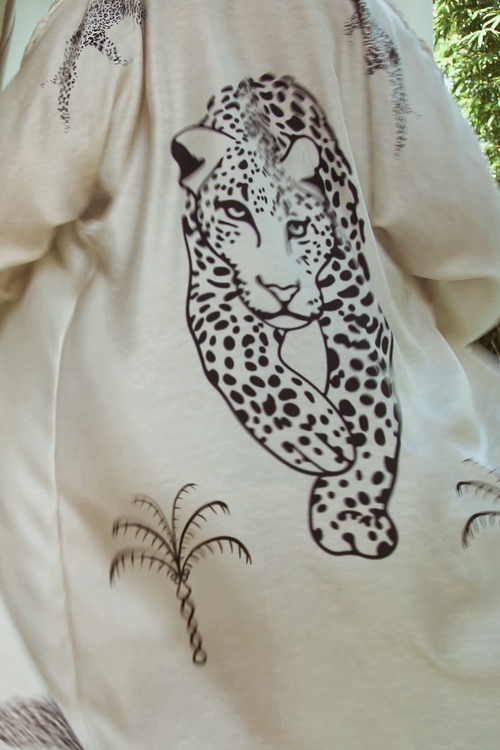 Introducing the The Royal Robe Jaguar Kimono in Sustainable Silk a tailored, bespoke kimono crafted from lightweight silk.