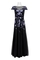 Theia Boat Neck Cap Sleeve Tie Waist Zipper Back Embellished Mesh Dress; Fabric: Embellished Mesh (100% Nylon) Lining (100% Polyester); Fabric Content: LINED