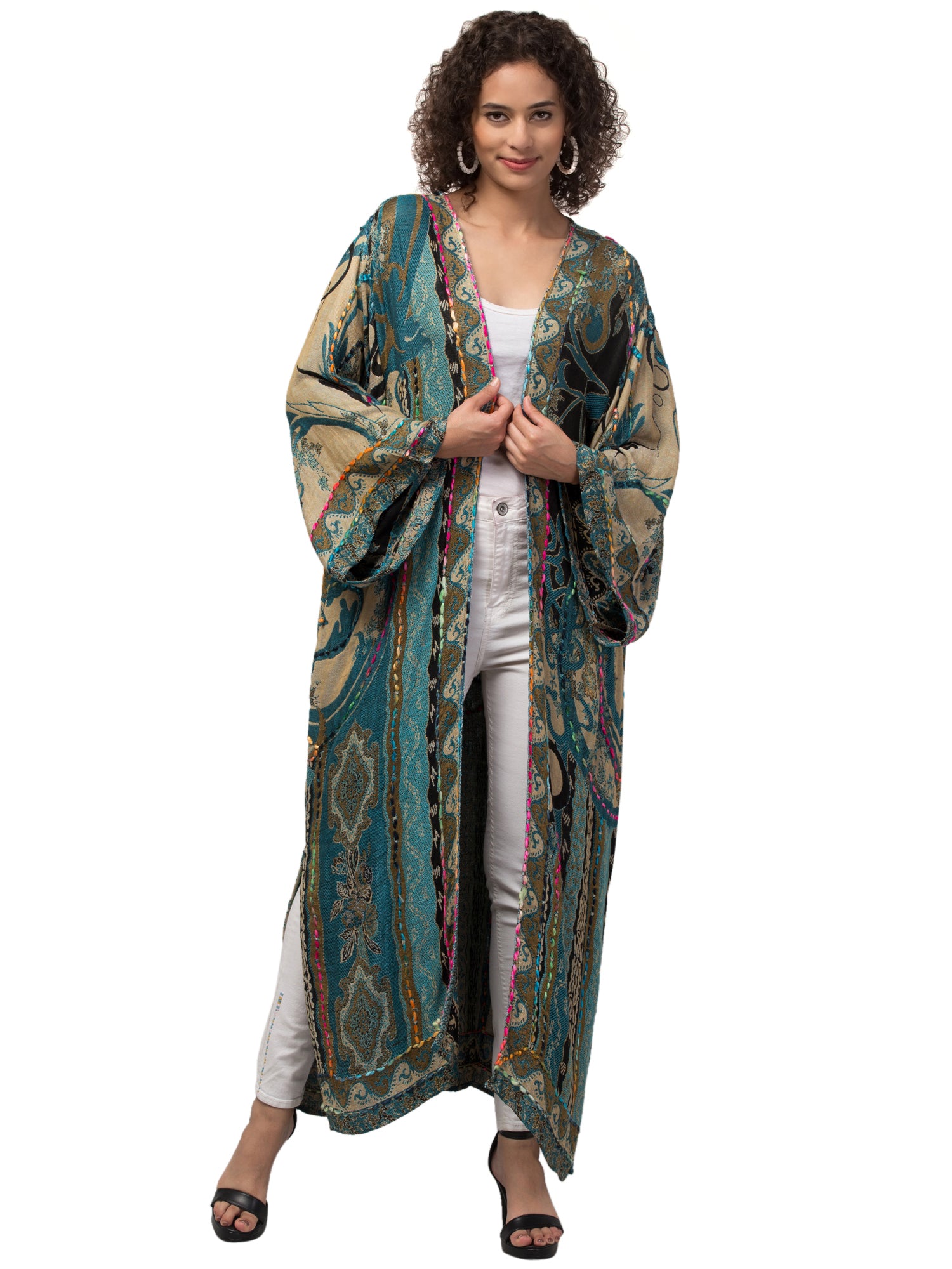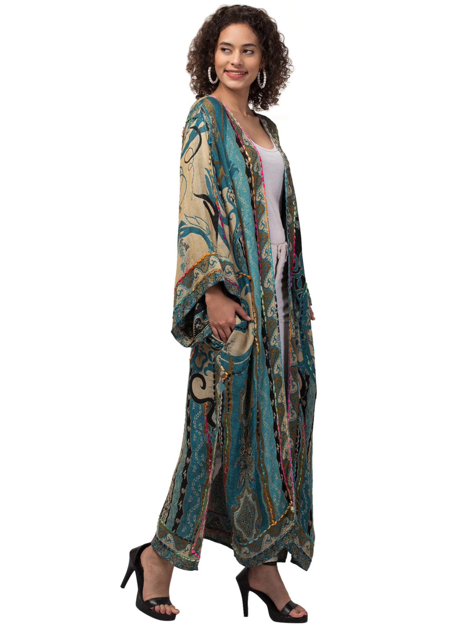 Each piece of this kimono jacket is a testament to the skill and dedication of Indian artisans. The intricate hand embroidery is not only visually stunning but also tells a story of cultural heritage and traditional craftsmanship. By choosing this jacket, you are supporting local artisans and preserving their time-honored techniques.