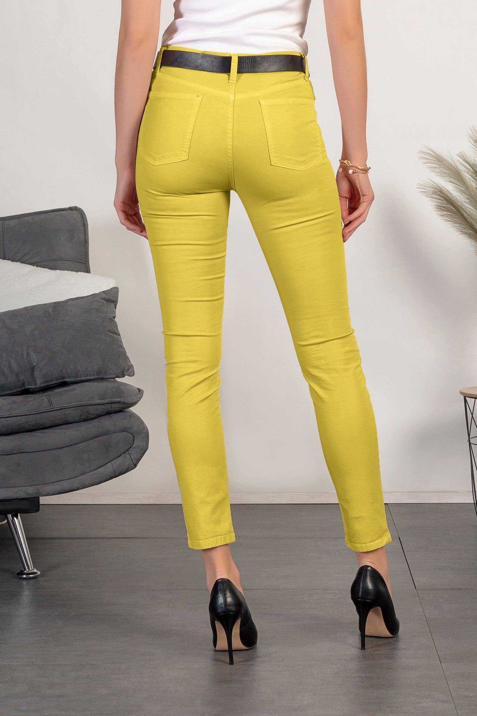 Introducing the Ruesca Tight Cotton Pants in a vibrant yellow hue, designed for those who appreciate both style and comfort. These elegant pants are crafted from high-quality, elastic cotton that ensures a snug fit while providing maximum comfort throughout the day. Whether you're heading to the office or enjoying a casual outing, these pants will keep you looking chic and feeling great.