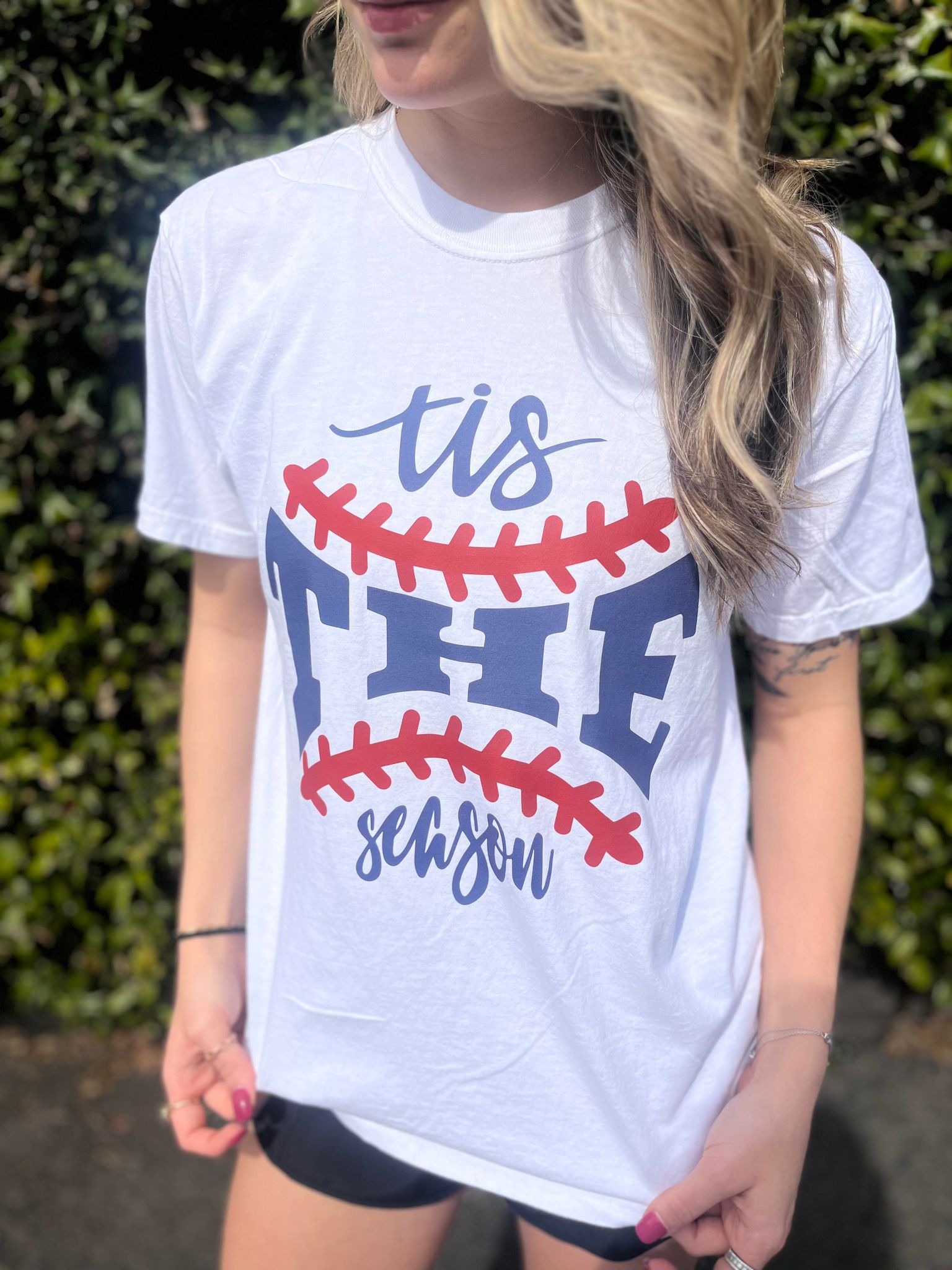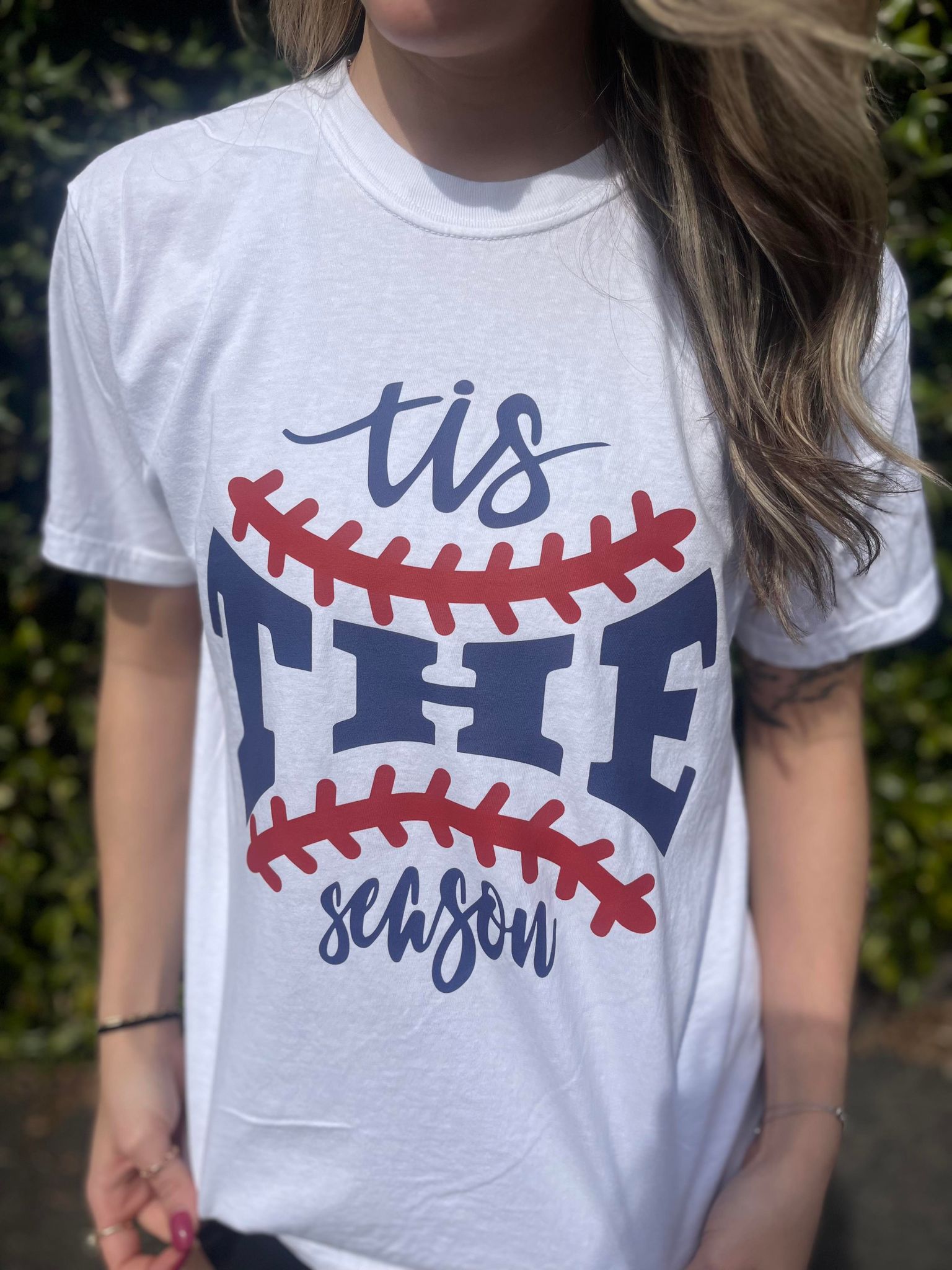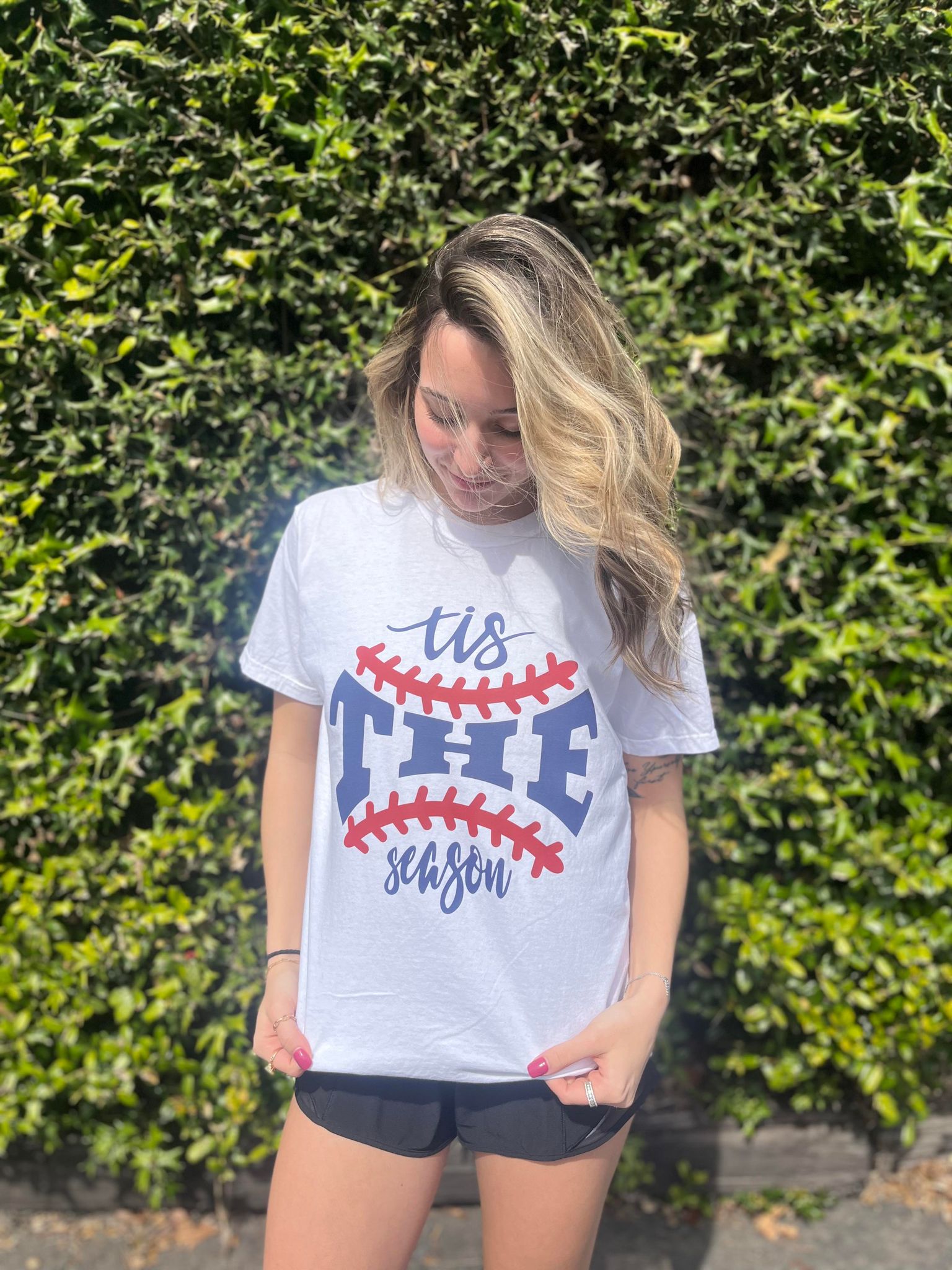 'Tis the Season Baseball Tee is the ultimate apparel for baseball enthusiasts who want to showcase their team spirit while staying comfortable and stylish. This tee is designed with the fan in mind, making it a perfect choice for game days, casual outings, or simply lounging at home. Made from high-quality materials, this shirt ensures durability and comfort, allowing you to cheer for your favorite team all season long.