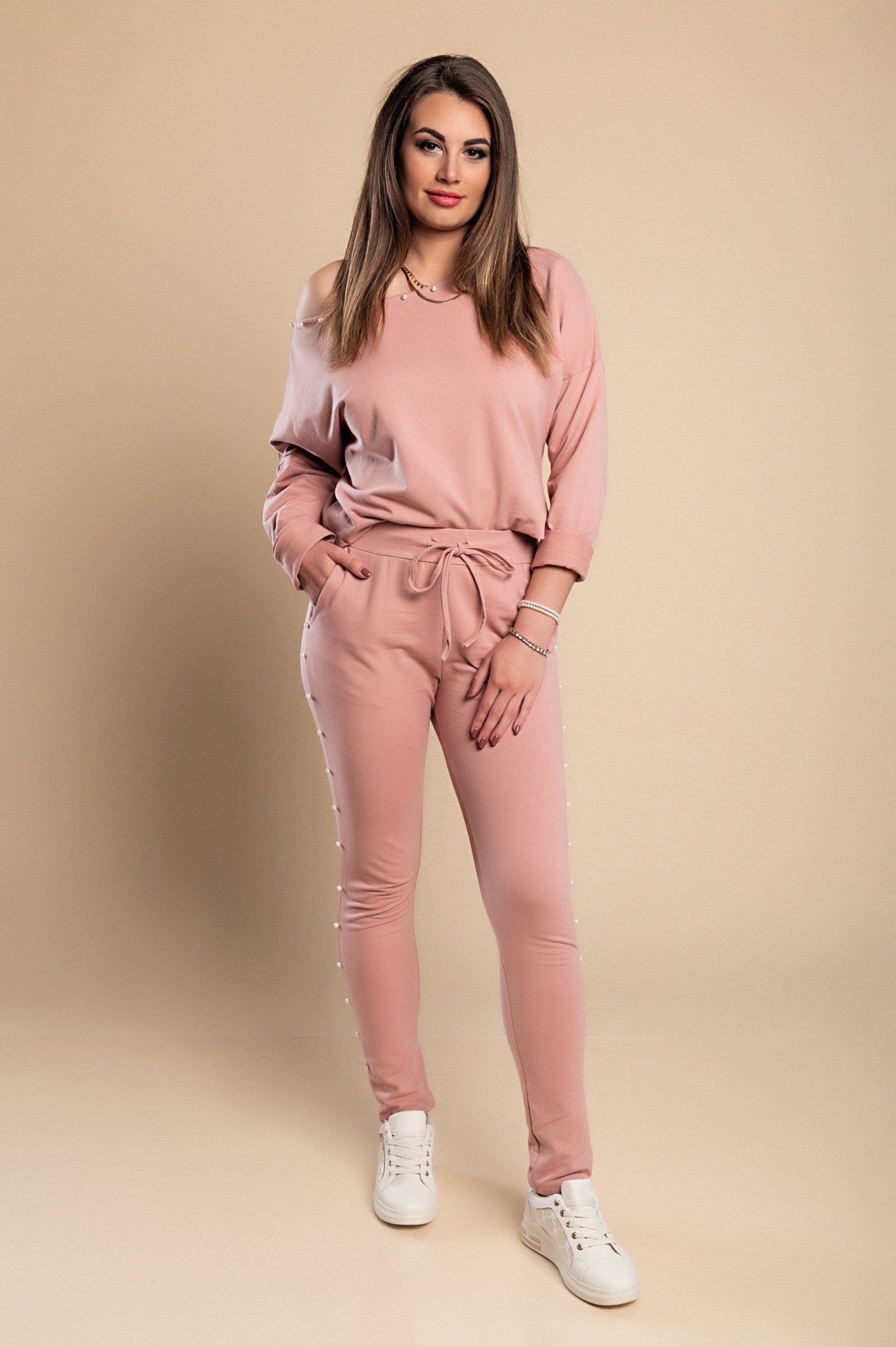 In summary, the Kyla Tracksuit Set with pearl imitation in pink is a fashionable and functional choice for anyone looking to enhance their activewear collection. With its stylish design, quality materials, and inclusive sizing, this tracksuit set is sure to become a favorite in your wardrobe.