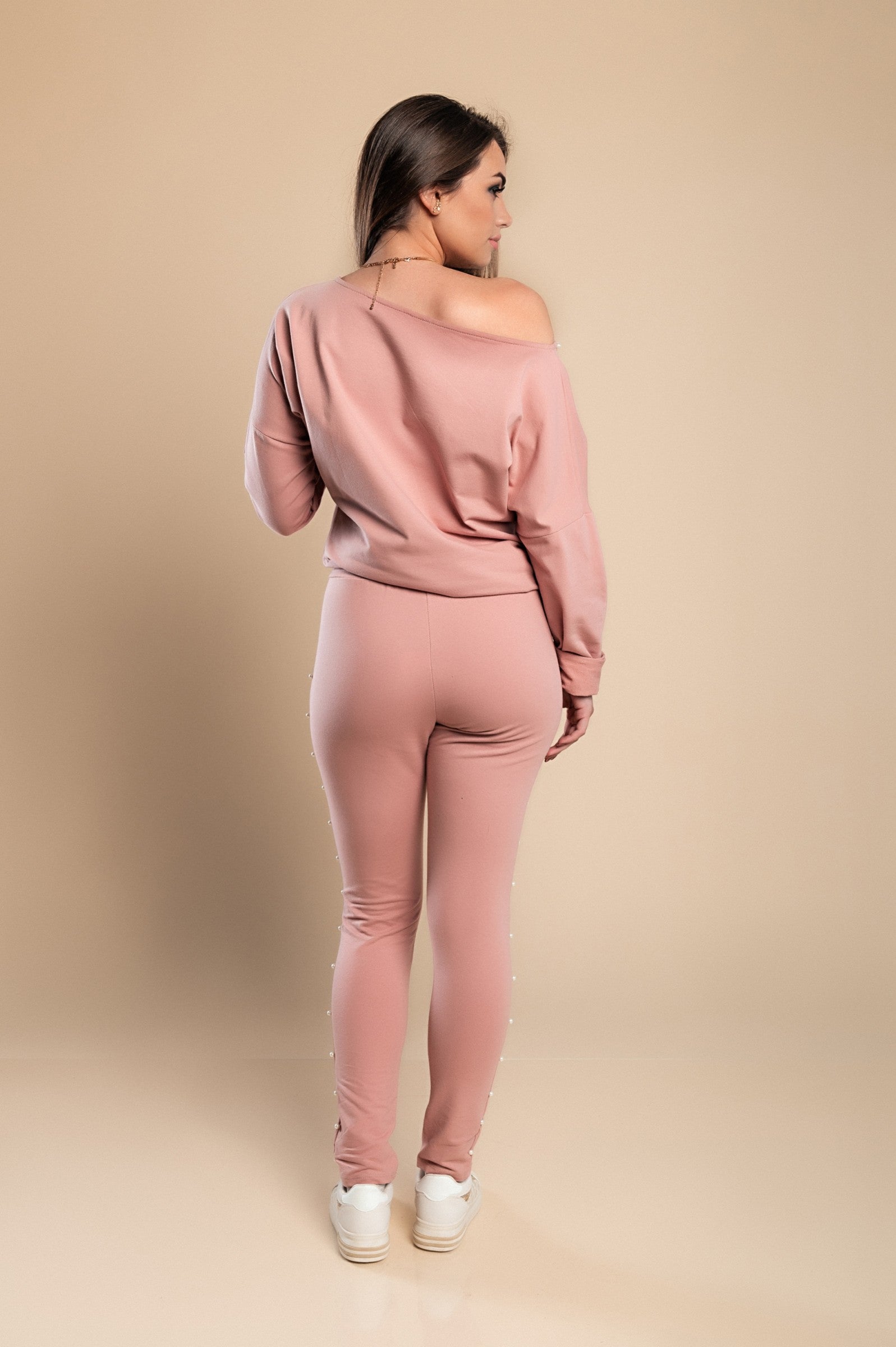 The Kyla Tracksuit Set with pearl imitation in pink is the perfect blend of style and comfort. Made from high-quality cotton, this trendy sports sweatshirt and pants set is designed to provide full wearing comfort, making it an ideal choice for various sports activities or simply lounging during your leisure time.