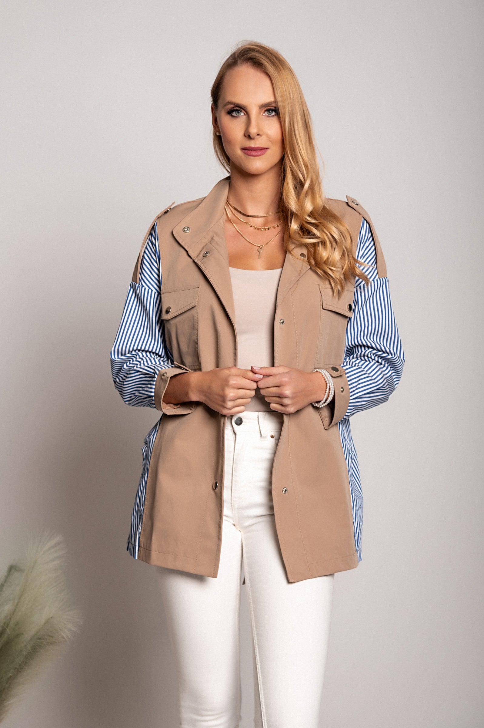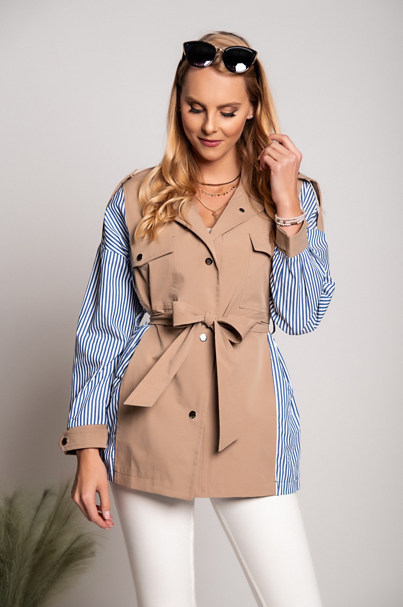 The Trenchcoat Xalapa in khaki is the perfect blend of style and functionality, designed for those who appreciate quality and elegance in their outerwear. Made from 100% polyester, this trench coat offers a pleasant feel against the skin while ensuring durability and longevity. The chic khaki color makes it a versatile addition to any wardrobe, suitable for various occasions, from casual outings to more formal events.