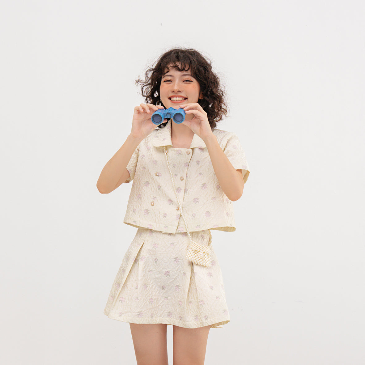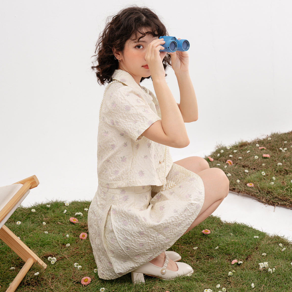 The Usagi Top showcases an A-line shirt design that flatters a variety of body shapes. It is adorned with two rows of meticulously crafted flower buttons, adding a charming detail that enhances its overall appeal. The pleated skirt, complete with an inner lining, ensures that you feel comfortable and confident while wearing it. Additionally, the dress belt features a decorative heart hook, making this top not only stylish but also functional.