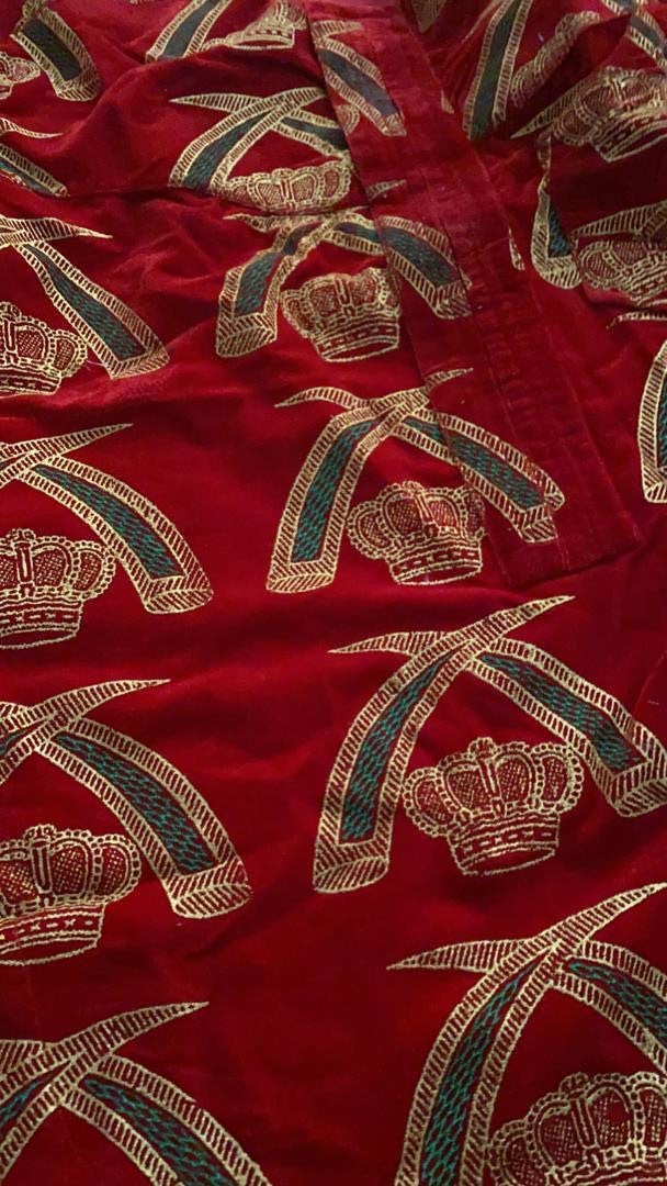 The Velvet Isiagu Igbo attire is a stunning representation of Nigerian culture, specifically designed for chieftaincy occasions. This luxurious garment is made from high-quality velvet fabric, ensuring both comfort and elegance. The isiagu style is deeply rooted in Igbo tradition, making it a popular choice for formal events, celebrations, and cultural gatherings.