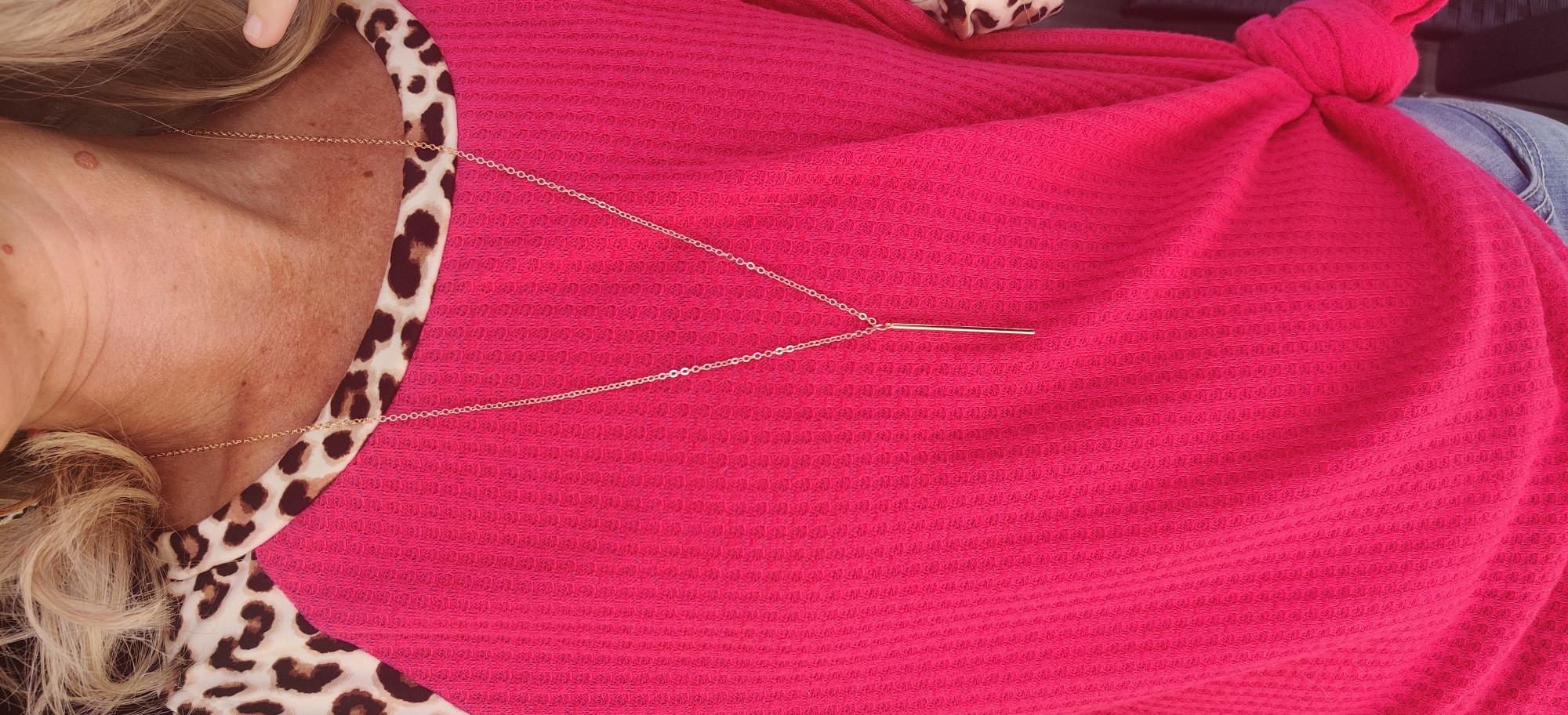 The Vertical Bar Necklace is a stunning accessory that combines elegance and modern design. With its longer style and trending solid bar design, this necklace is perfect for adding a touch of sophistication to any outfit. Whether you're dressing up for a night out or looking to enhance your everyday look, this necklace is a versatile choice that complements tunics, turtlenecks, and tank tops beautifully.