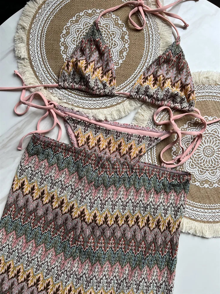 Introducing the Vinia three piece swimsuit from Sexikinis Swim, a perfect blend of style and comfort for your beach outings. This bikini set is designed specifically for juniors, ensuring a fashionable look while providing the necessary support and comfort. Made from high-quality materials including polyester and cotton blends, this swimsuit is not only durable but also soft against the skin, making it ideal for long days at the beach or by the pool.