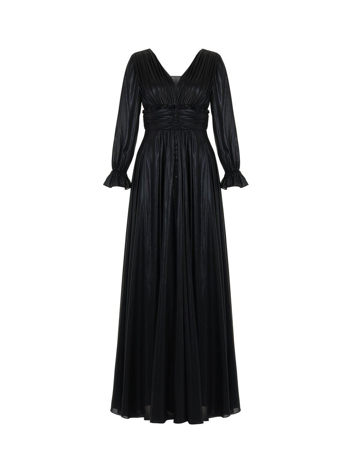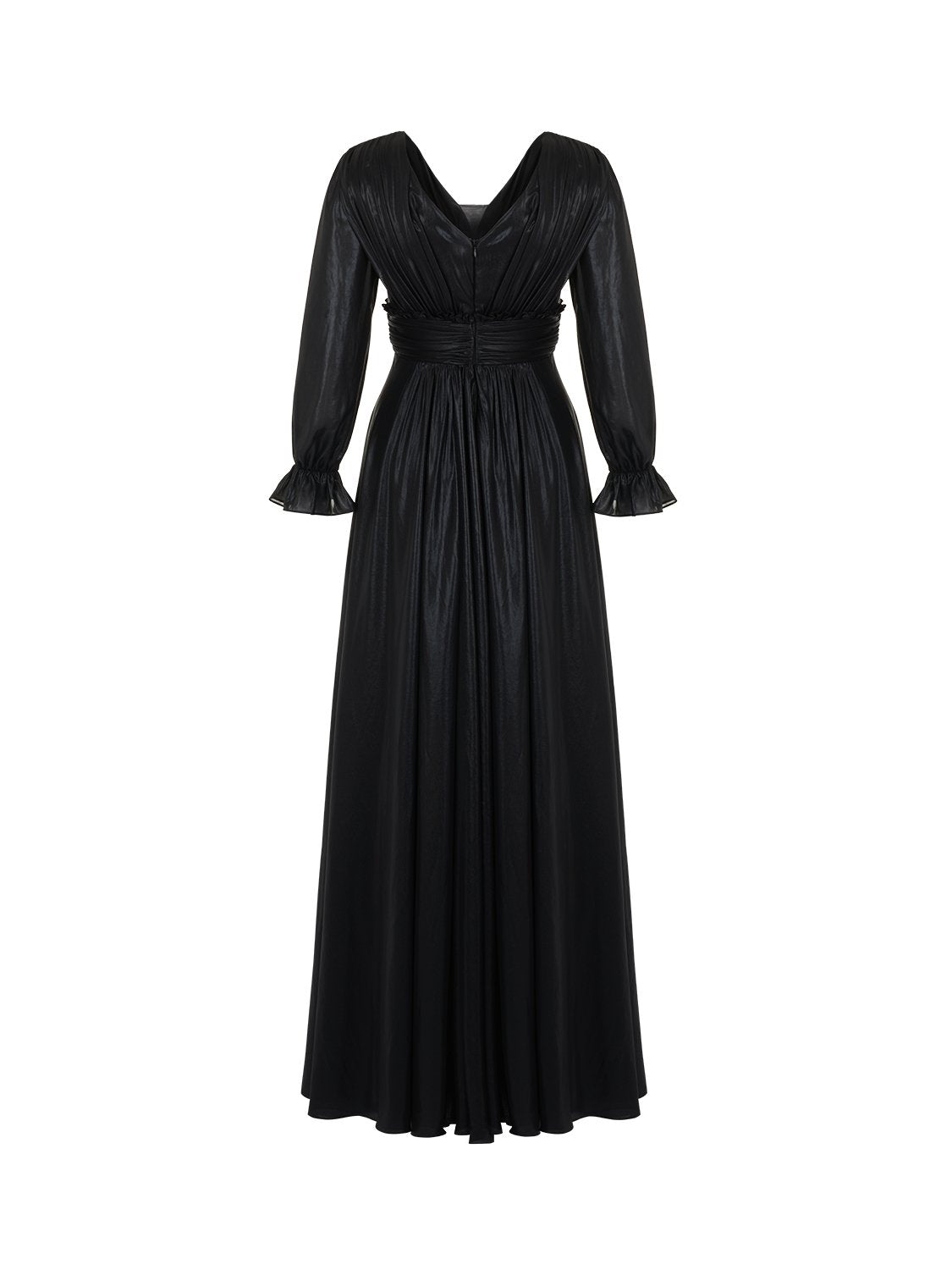 Thanks to its long sleeves and elegant design, the V-Neck Ruched Long Dress is suitable for every season. In the cooler months, layer it with a stylish jacket or cardigan for added warmth. During the warmer months, wear it on its own to showcase its beautiful silhouette. The dress's timeless design ensures that it will remain a staple in your wardrobe, regardless of changing fashion trends.