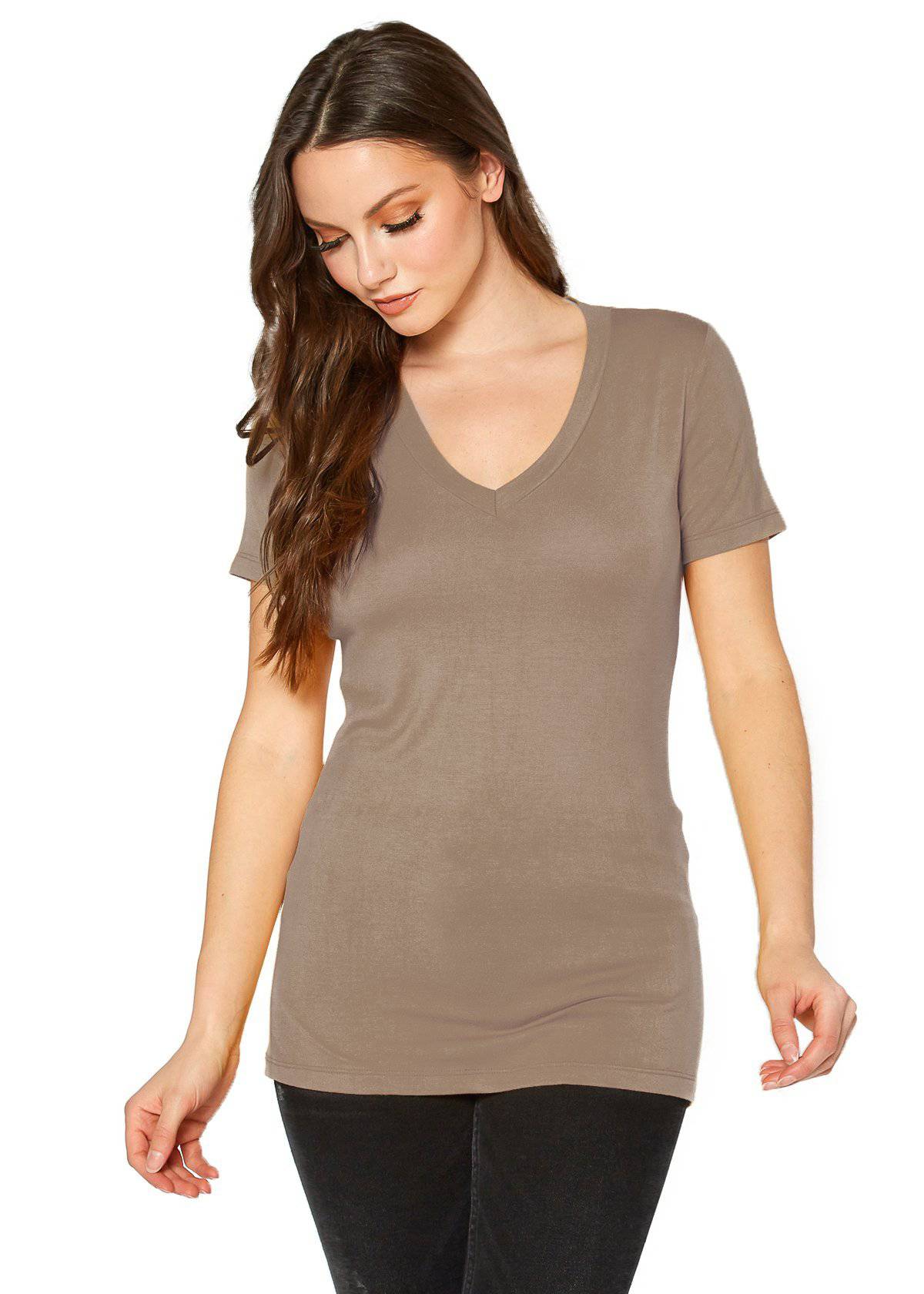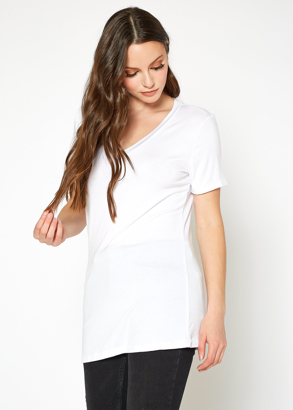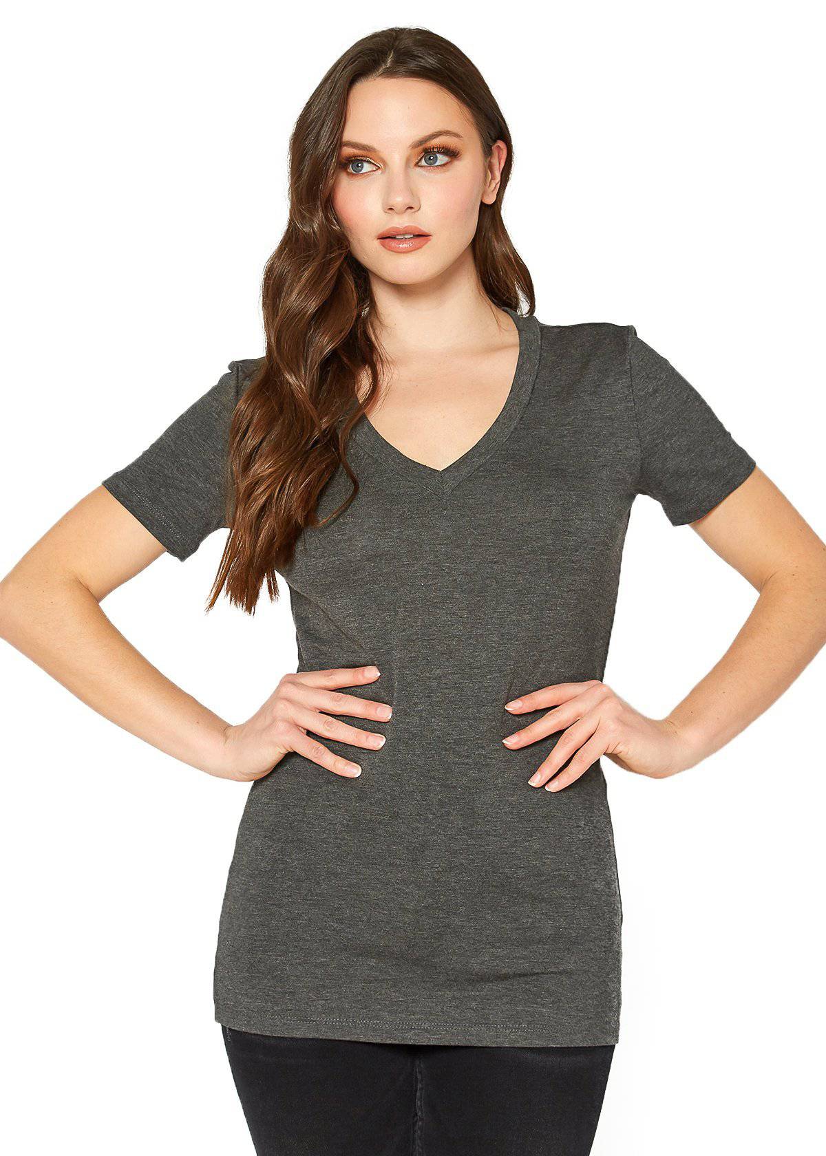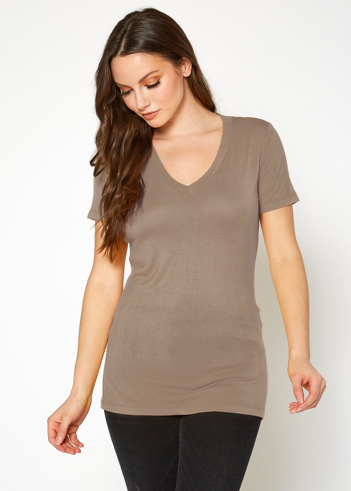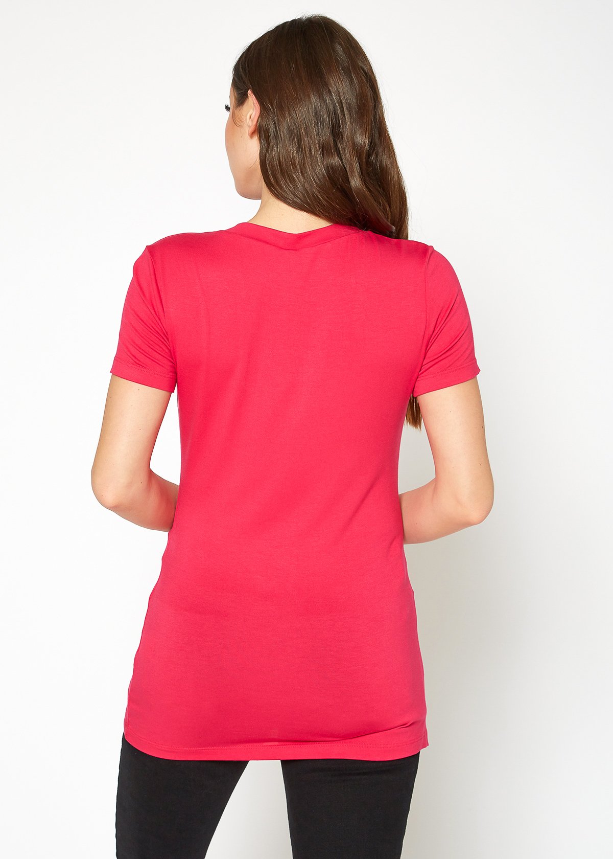 The fitted design of this V-neck tee accentuates your silhouette, making it a flattering choice for all body types. The V-neckline adds a touch of elegance, allowing you to dress it up or down depending on the occasion. Pair it with jeans for a casual look or with a skirt for a more polished outfit.