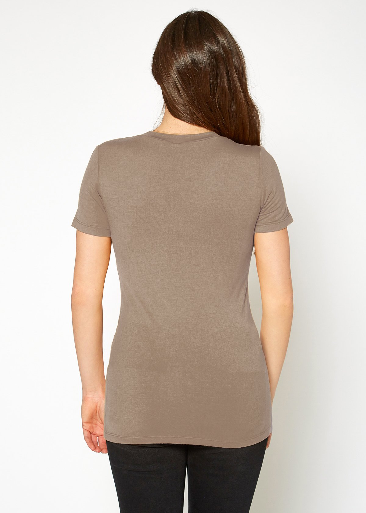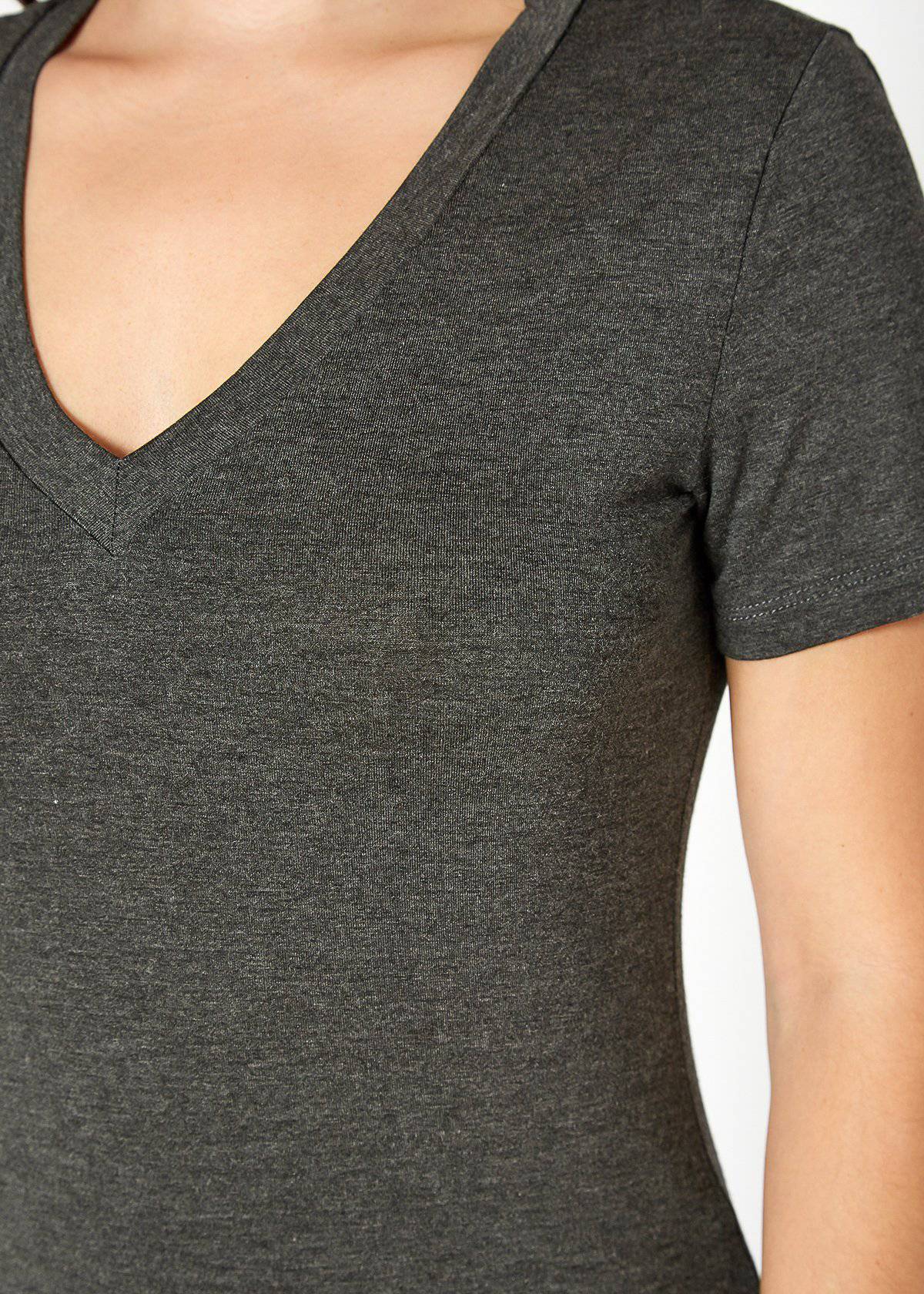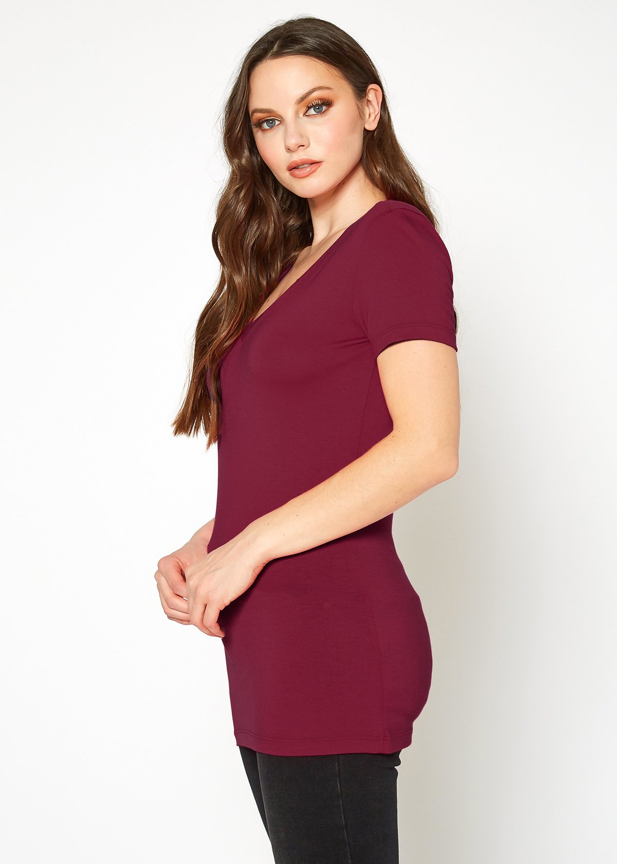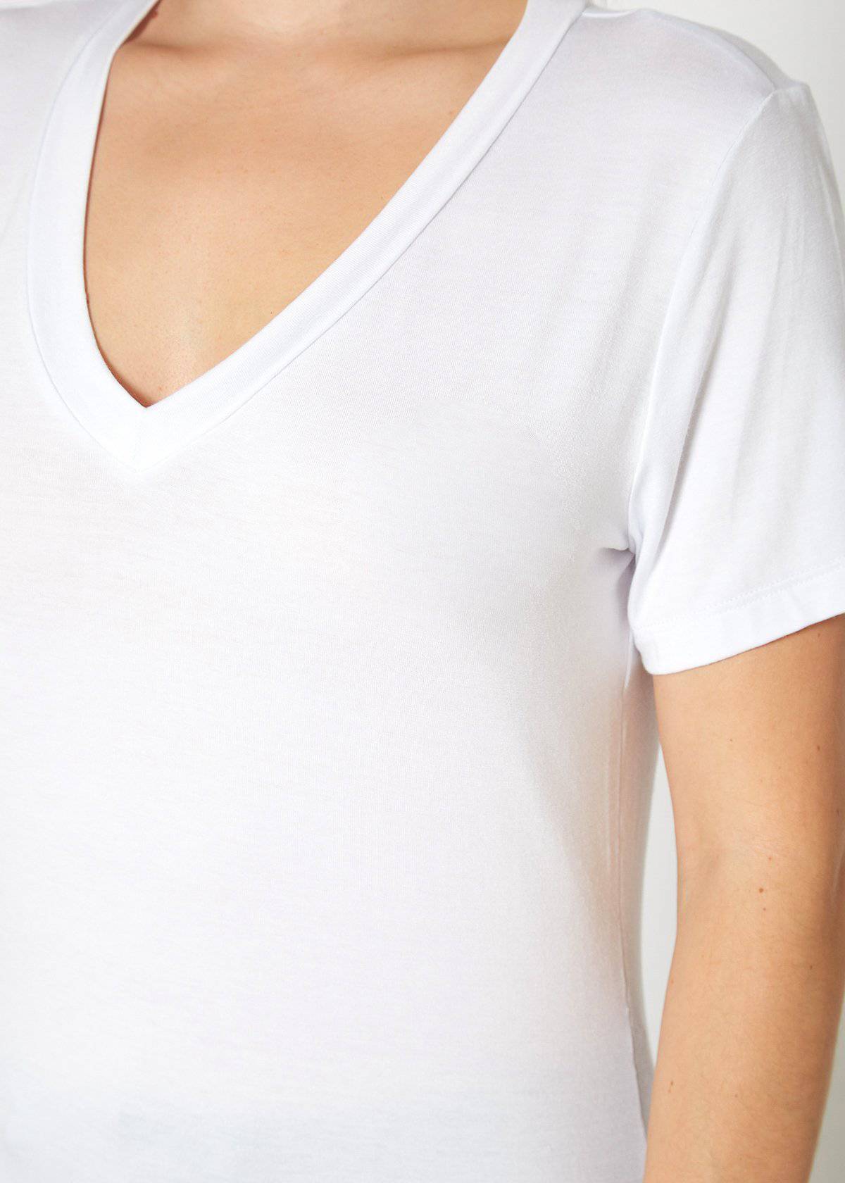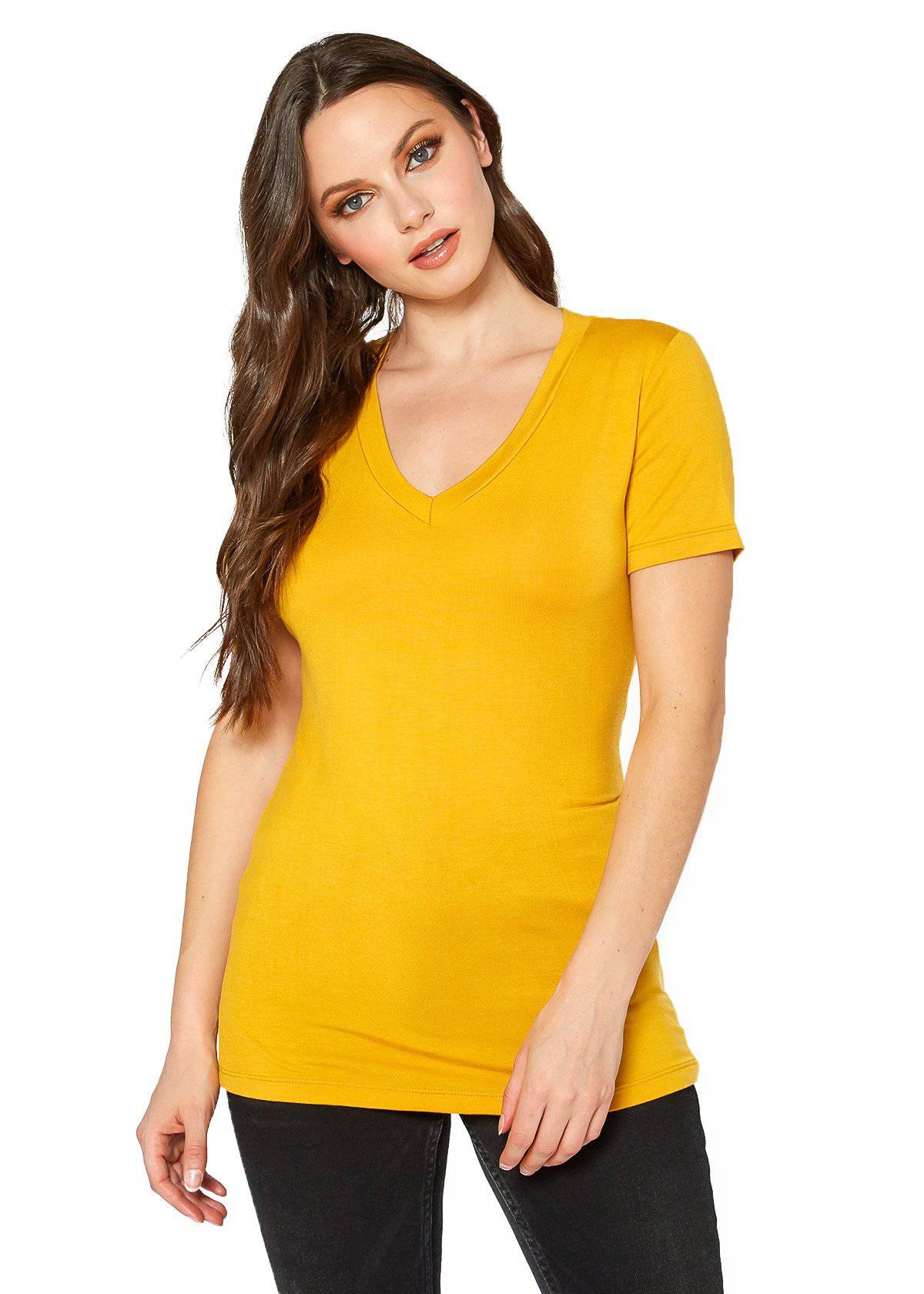 The fitted design of this V-neck tee accentuates your silhouette, making it a flattering choice for all body types. The V-neckline adds a touch of elegance, allowing you to dress it up or down depending on the occasion. Pair it with jeans for a casual look or with a skirt for a more polished outfit.