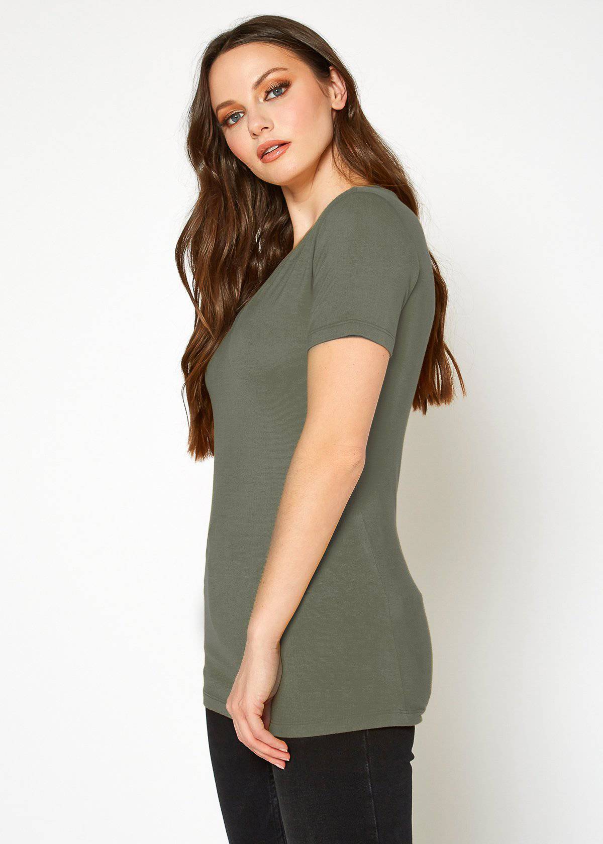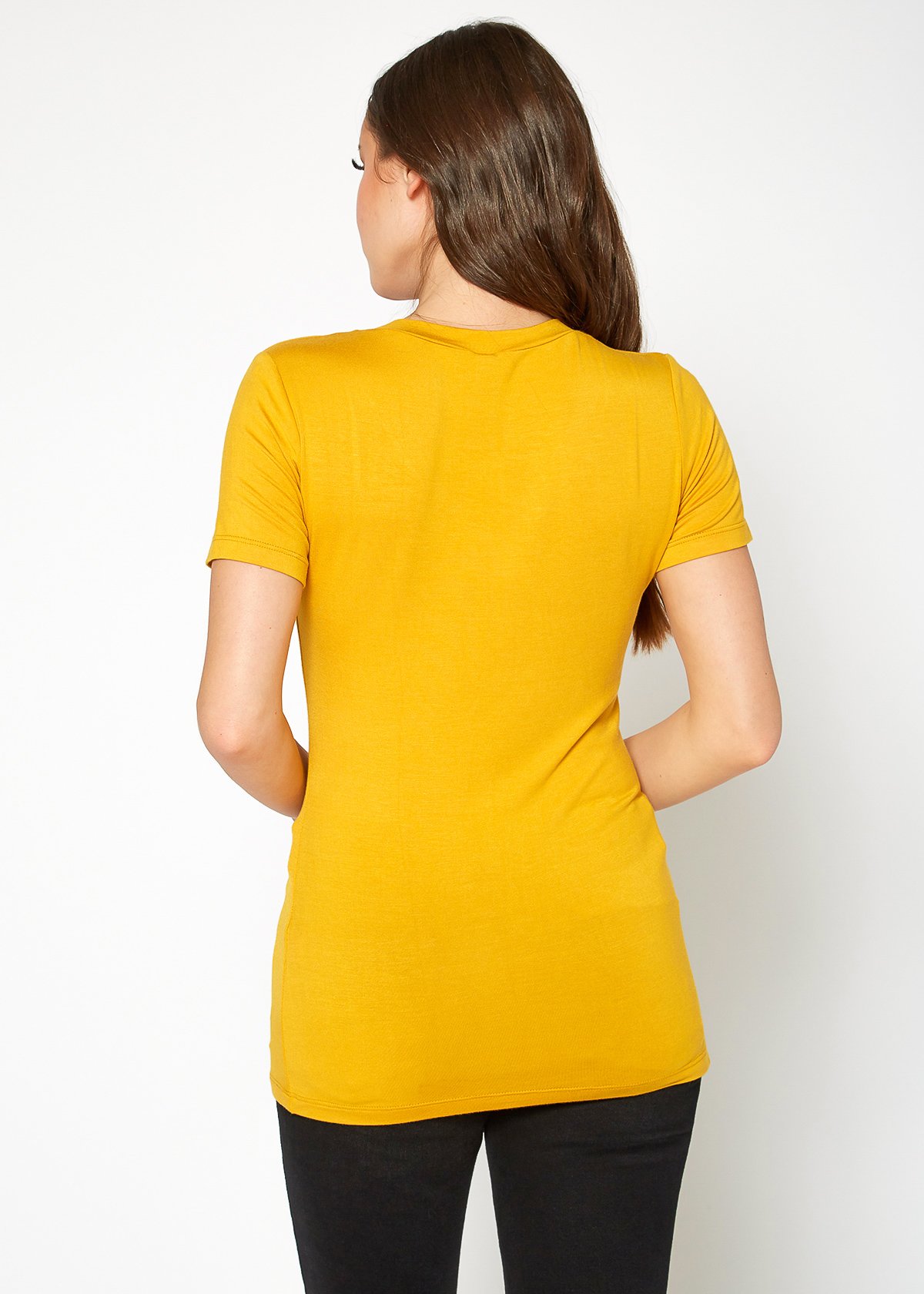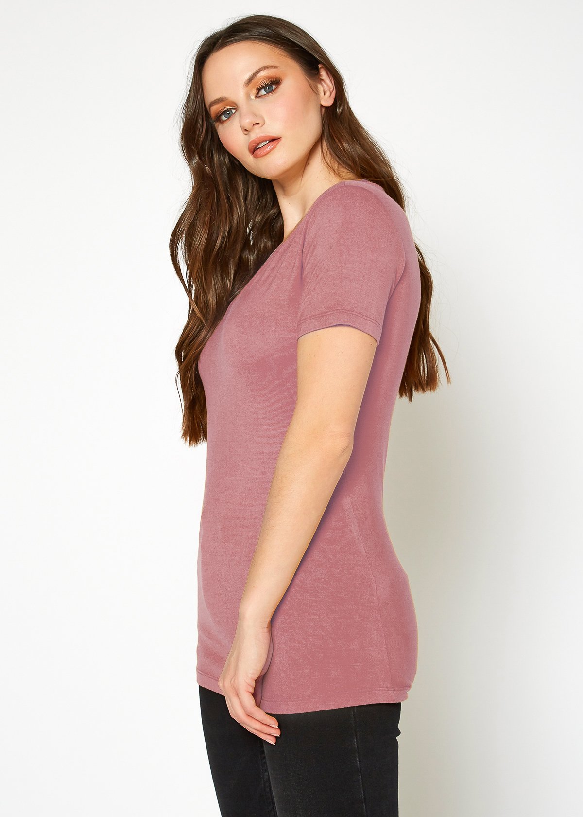 Crafted from a blend of 95% Rayon and 5% Spandex, this basic tee offers a soft touch against your skin while maintaining its shape and elasticity. The rayon provides a lightweight feel, making it ideal for layering or wearing on its own during warmer months. The spandex adds just the right amount of stretch, allowing for ease of movement without compromising on style.
