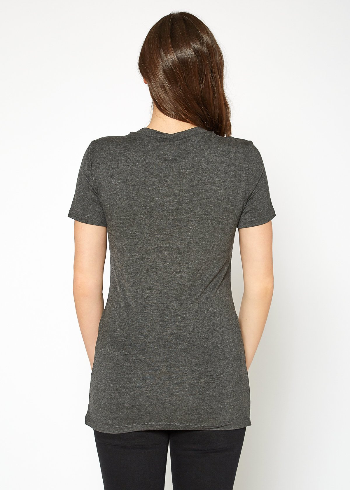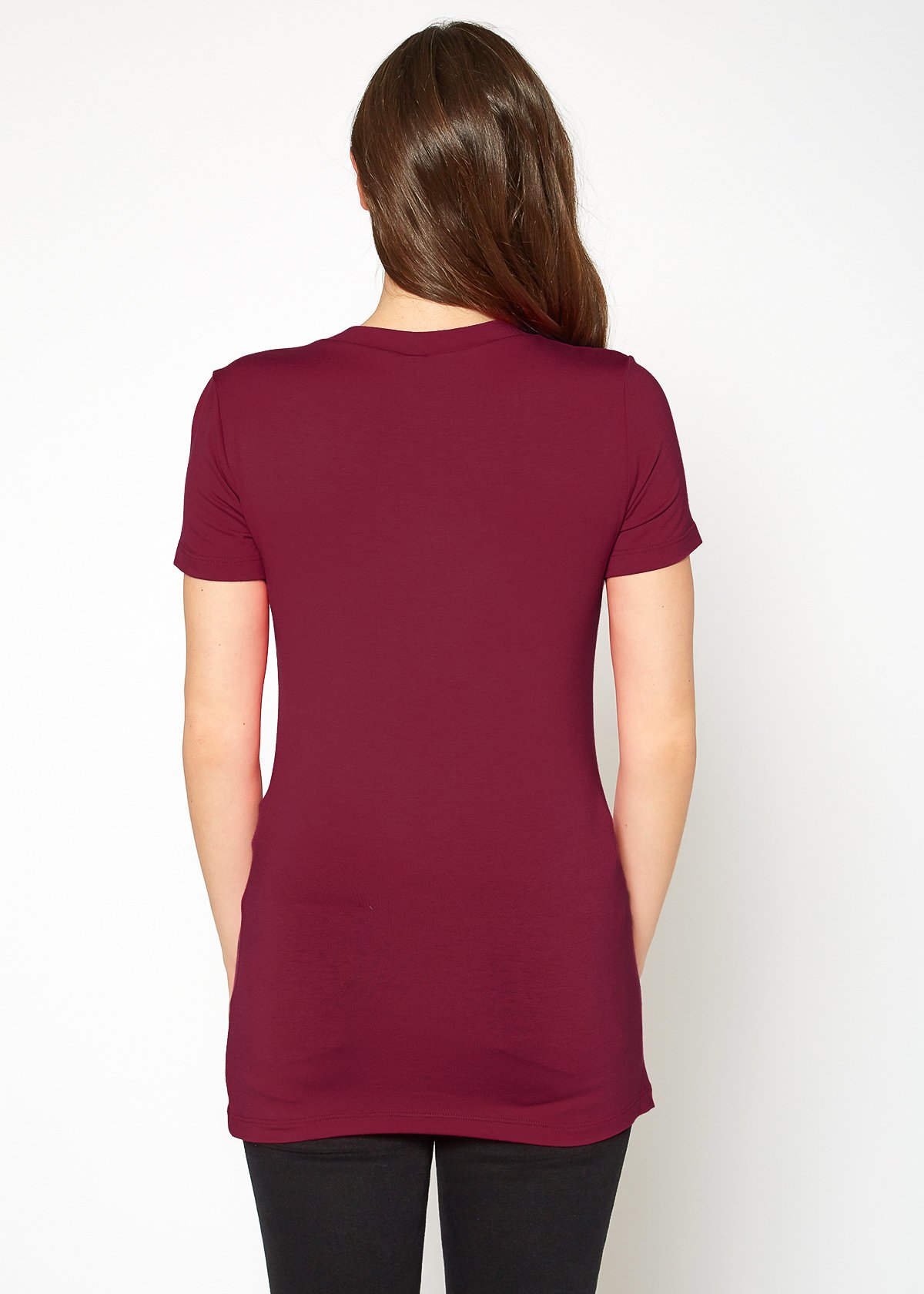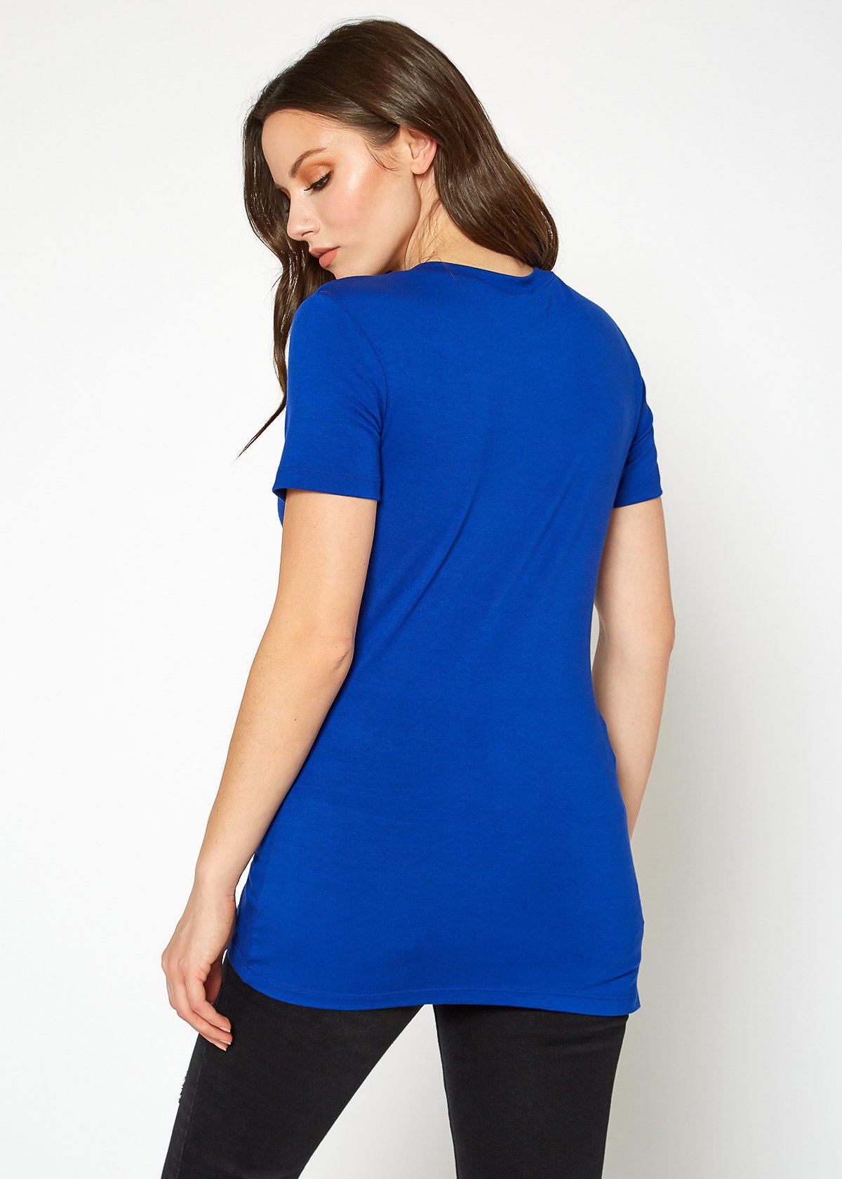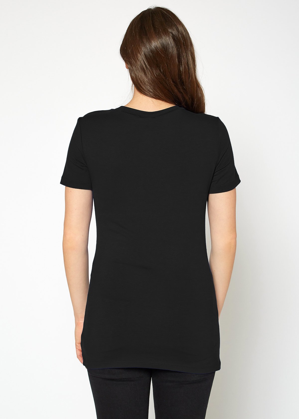 This tee is not only great on its own but also perfect for layering. Wear it under a cardigan, denim jacket, or blazer for a chic look that transitions seamlessly from day to night. The simplicity of the design allows it to complement any outerwear, making it a staple piece in your closet.