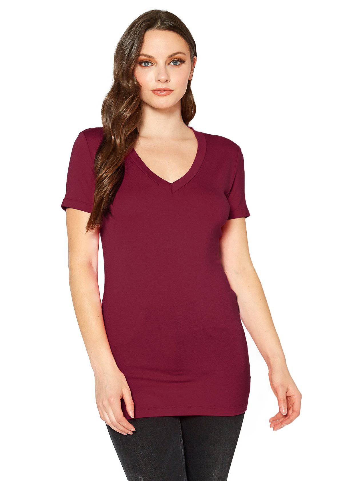 Introducing our Women's Basic Essential V-neck Short Sleeve Fitted Everyday T-shirt, a must-have addition to your wardrobe. This versatile tee is designed for comfort and style, making it perfect for any occasion, whether you're running errands, lounging at home, or heading out with friends. The high stretch fabric ensures a flattering fit that moves with you, providing all-day comfort.