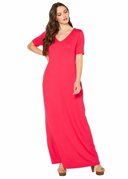 Introducing our Women's V-neck Short Sleeve Maxi Dress with Pockets, a perfect blend of style and comfort. This dress is designed for the modern woman who values both fashion and functionality. Made from a high-quality blend of 95% rayon and 5% spandex, this maxi dress offers a soft touch and excellent stretch, ensuring a flattering fit for various body types.