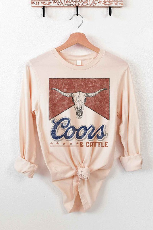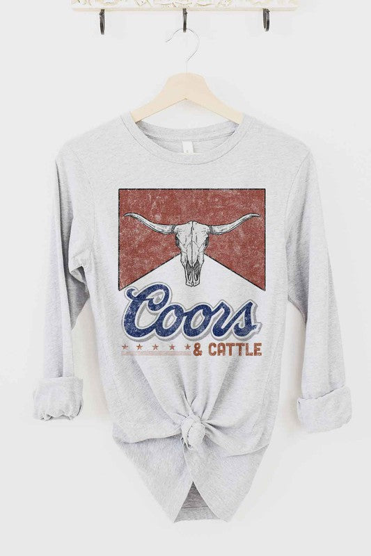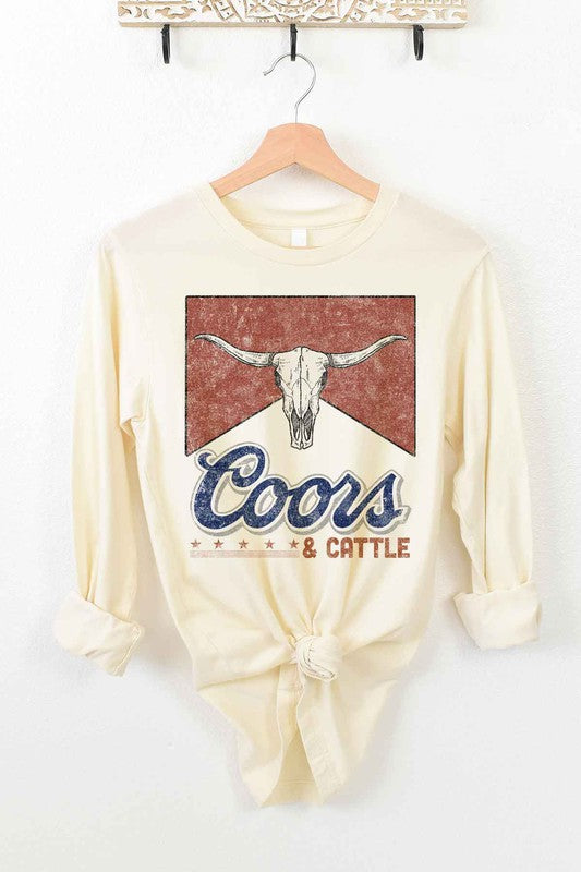 A stylish Western Cattle Long Sleeve Tee made from premium cotton, featuring a classic fit suitable for all genders.