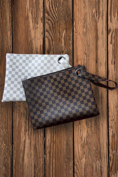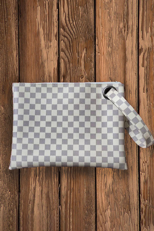 White Checkered Print Clutch