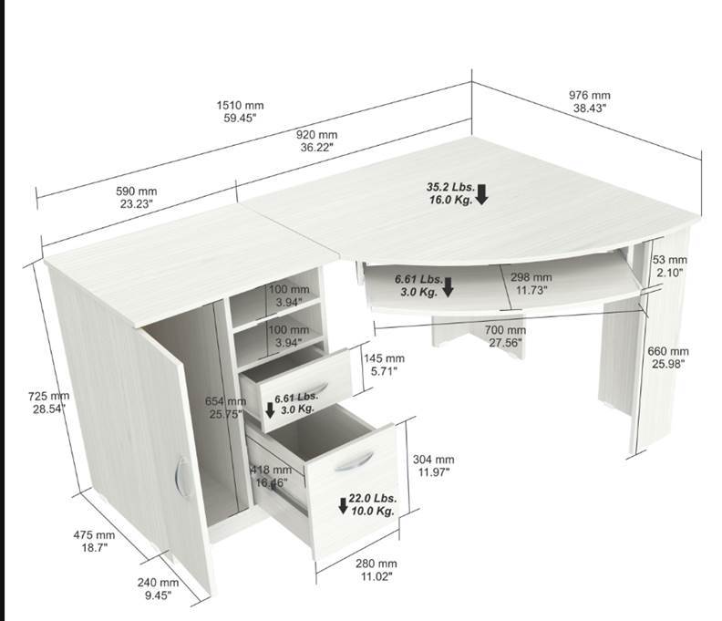 Crafted from solid composite wood, this desk is laminated on all sides with double-faced durable melamine. This material is not only visually appealing but also resistant to stains, heat, and scratches, ensuring that your desk remains in pristine condition even with daily use. The robust construction guarantees longevity, making it a worthwhile investment for your workspace.